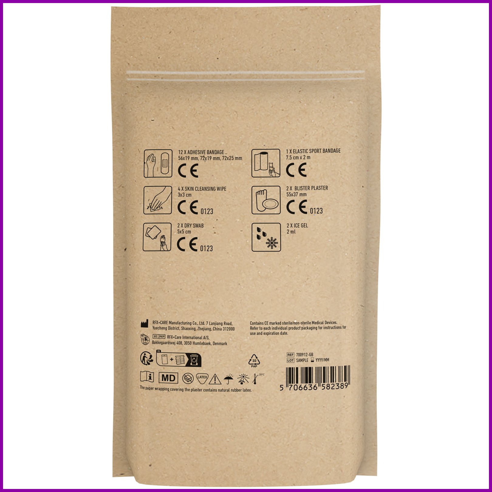 MyKit-ensiapupakkaus kartonkipussissa aktiiviseen elämäntapaan Kraft ruskea