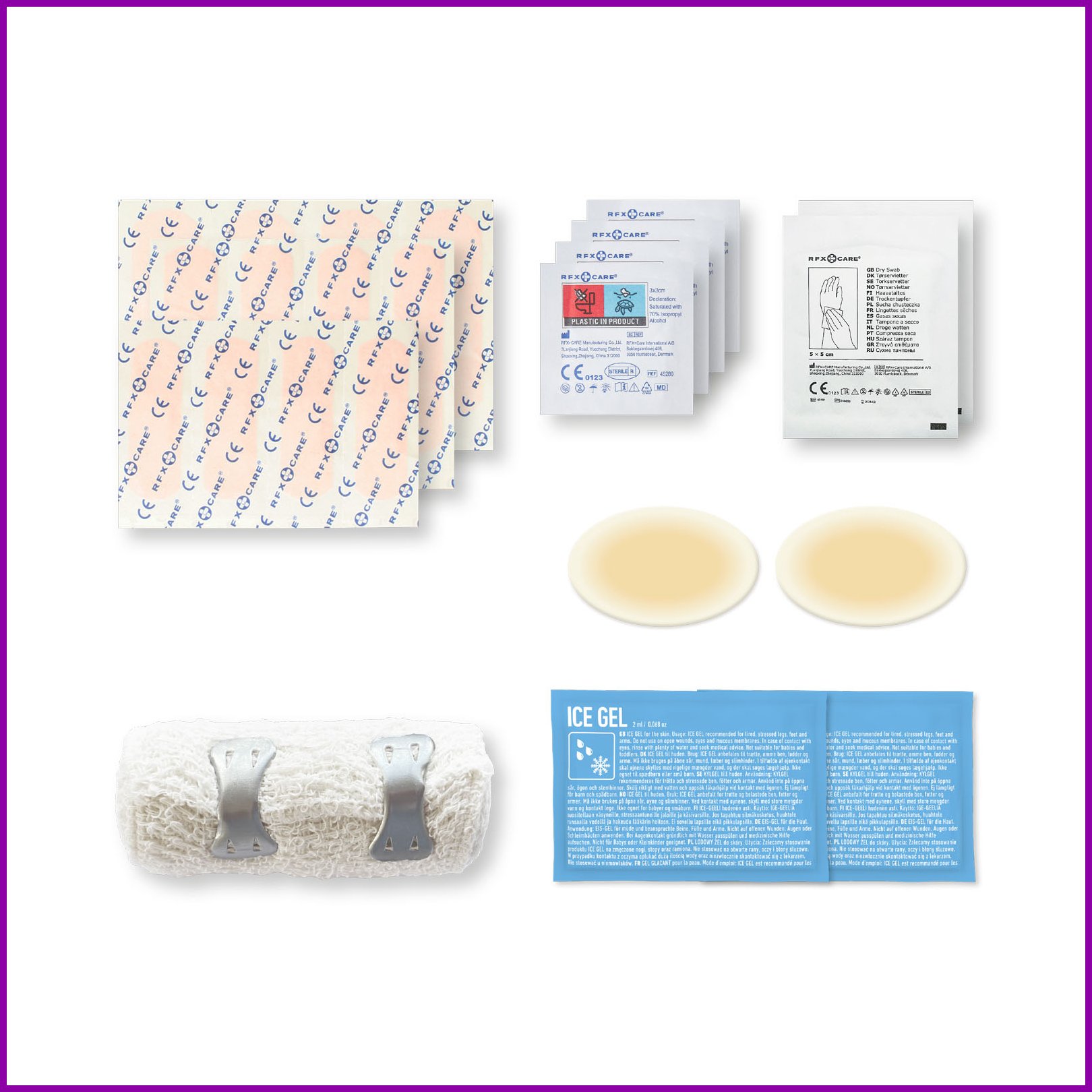 Ihanteellinen ensiapupakkaus aktiivisille henkilöille. Tämän pakkaus on hyvä pitää lähellä pienten vammojen ja vahinkojen varalta. Sisältö: 12 pesunkestävää laastaria, 4 ihonpuhdistuspyyhettä, 2 kuivapyyhettä, 2 jäägeeliä, 2 rakkolaastaria ja 1 elastinen side. Kaikki pakkauksen sisältämät ensiapu- ja hoitotuotteet täyttävät kaikki soveltuvat EU:n säännökset. Hinta sisältää täysväritulosteen.Värit ja Koot
