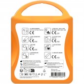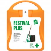 Täydellinen ensiapupakkaus festareille tai juhliin. Tämän pakkauksen avulla olet valmiina tilanteessa kuin tilanteessa sekä juhlissa että festareilla. Sisältö: 12 pesunkestävää laastaria, 4 ihonpuhdistuspyyhettä, 2 kuivapyyhettä, 2 kosteuspyyhettä, 2 kondomia, 1 rakkolaastari, 1 aloe vera -voide ja 2 korvatulpat. Kaikki pakkauksen sisältämät ensiapu- ja hoitotuotteet täyttävät kaikki soveltuvat EU:n säännökset. Hinta sisältää täysväritulosteen.