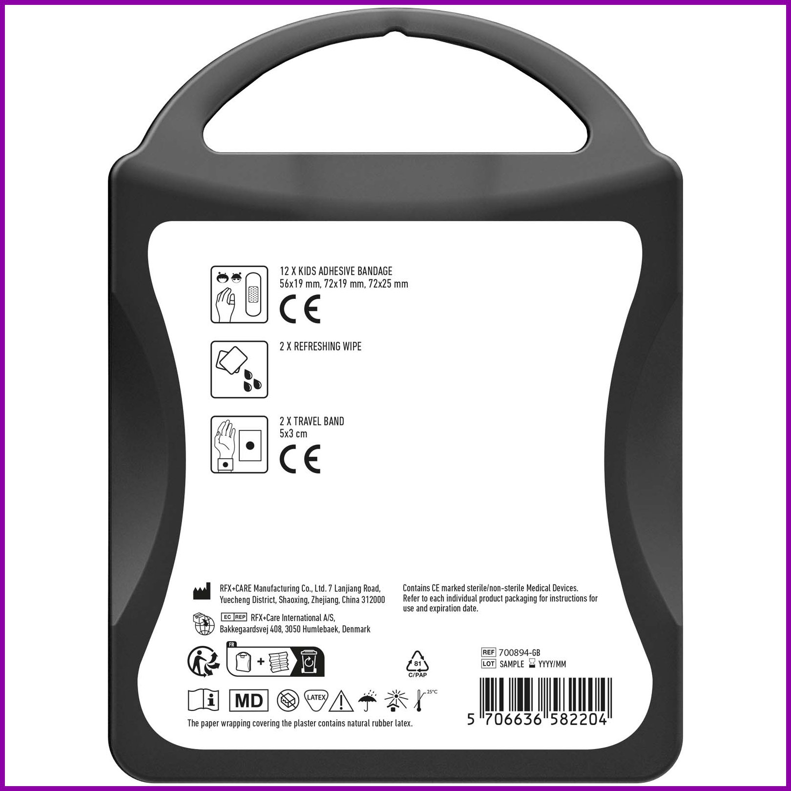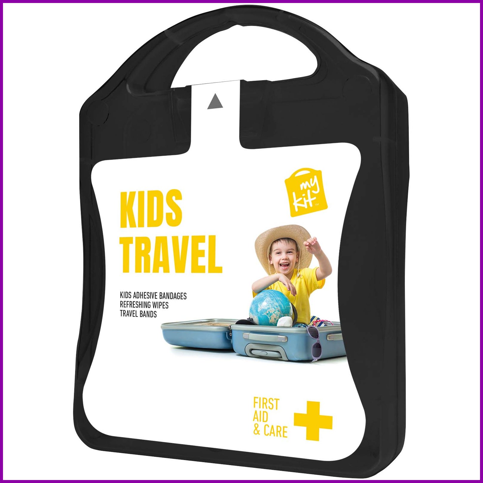 Lasten matkasetti MyKit sisältää perustarvikkeet haavanhoitoon ja matkarannekkeita matkapahoinvoinnin vähentämiseksi. Sisältö: 12 lasten laastaria, 2 kosteuspyyhettä ja 2 matkaranneketta. Kaikki pakkauksen sisältämät ensiapu- ja hoitotuotteet täyttävät kaikki soveltuvat EU:n säännökset. Hinta sisältää täysväritulosteen.