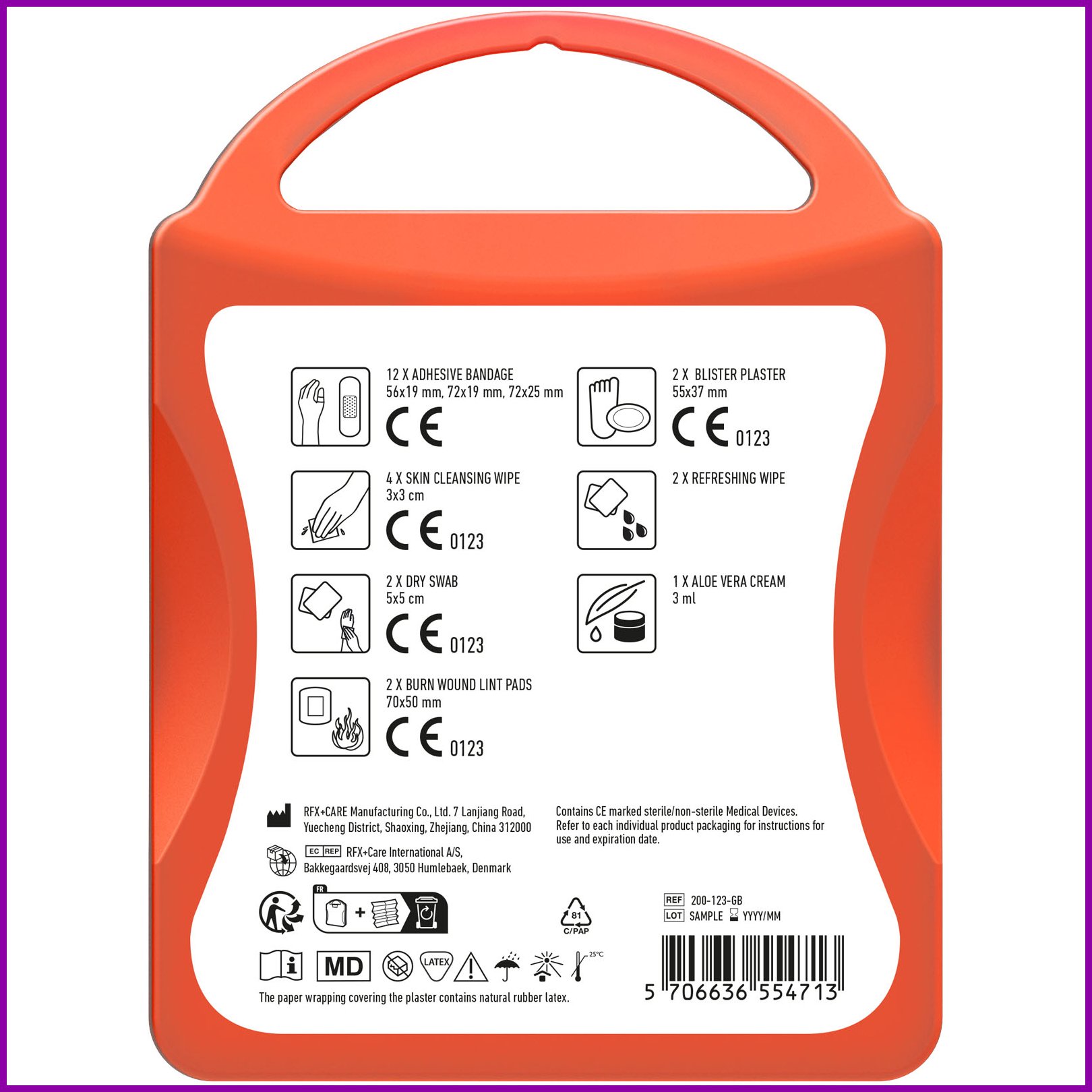 Ihanteellinen ensiapupakkaus matkailijoille. Tämän kattavan pakkauksen avulla olet valmis hoitamaan ja hoitamaan vammoja matkoillasi. Sisältö: 12 pesunkestävää laastaria, 4 ihonpuhdistuspyyhettä, 2 kuivapyyhettä, 2 palovammatyynyä, 1 rakkolaastari, 2 virkistävää pyyhettä ja 1 aloe vera -voide. Kaikki pakkauksen sisältämät ensiapu- ja hoitotuotteet täyttävät kaikki soveltuvat EU:n säännökset. Hinta sisältää täysväritulosteen.Värit ja Koot