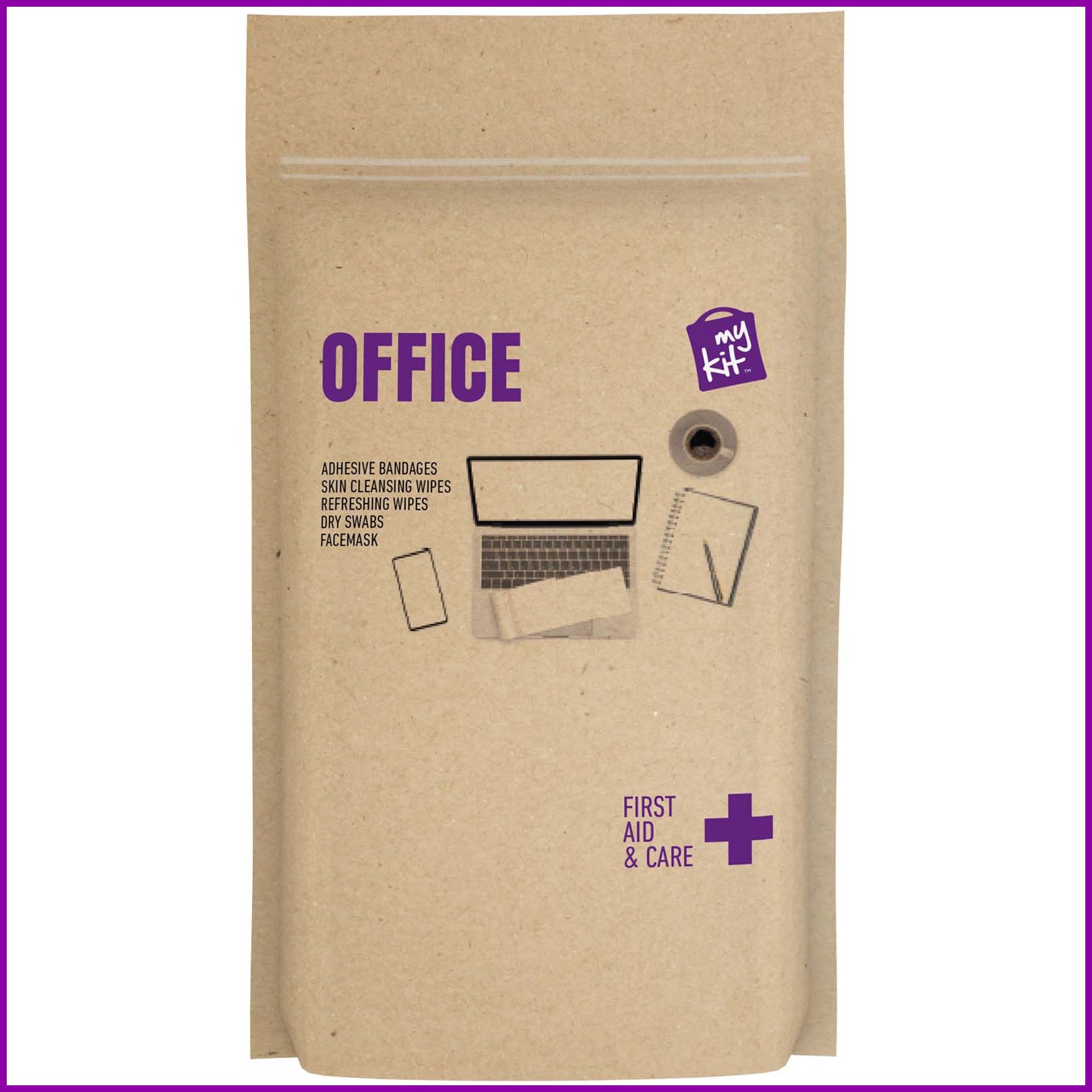 Pyydä tarjous painatuksesta tuotteseen MyKit toimiston ensiapupakkaus kartonkipussissa Kraft ruskea