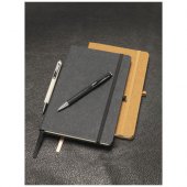 Pyydä tarjous painatuksesta tuotteseen Nahkapalakantinen Atlana-A5-muistikirja Musta