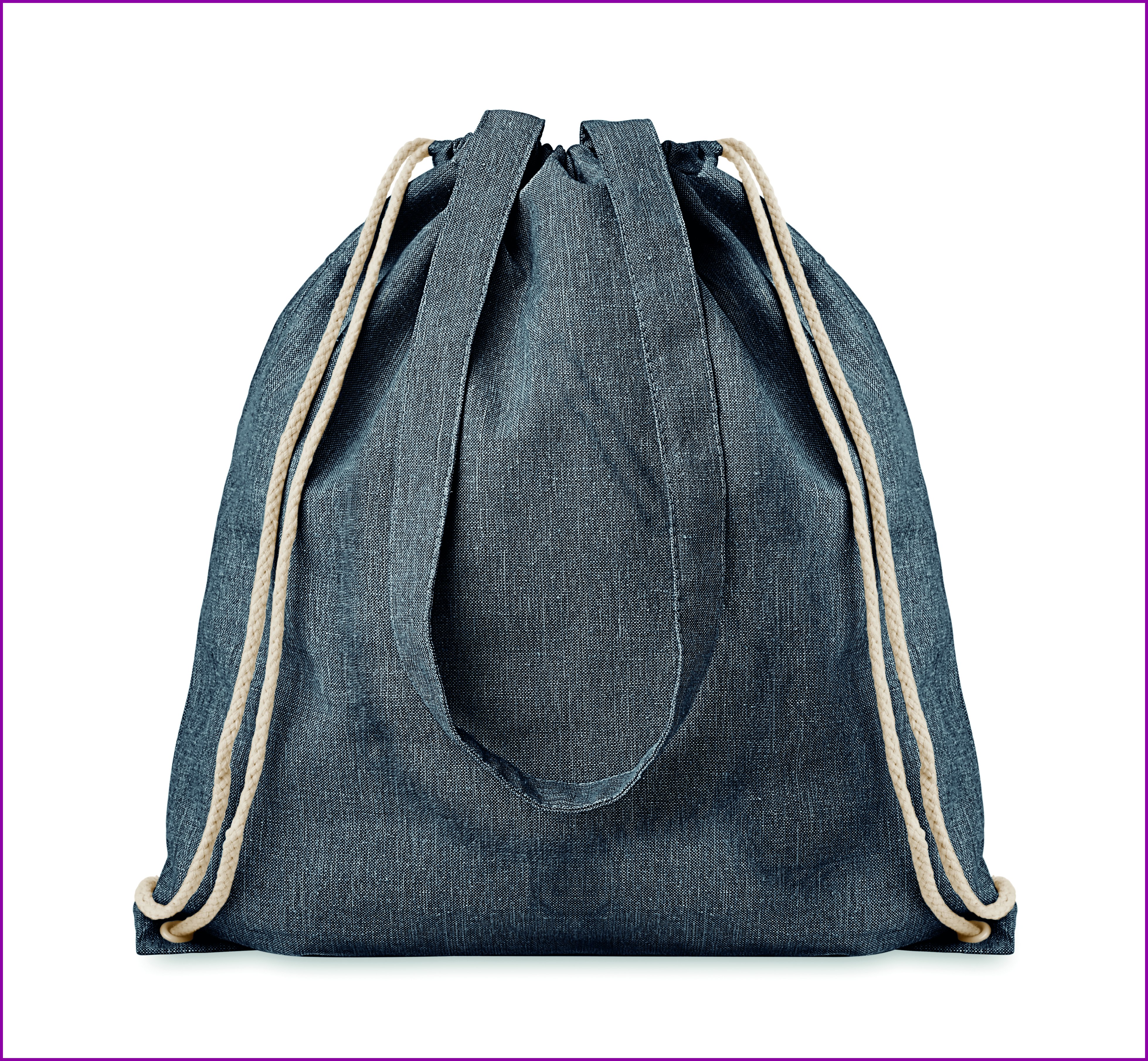2 sävyinen narureppu pitkillä nyöreillä, valmistettu kierrätetystä puuvillasta ja polyesteristä (20%/80%). Tuote voi kutistua painatuksen jälkeen.