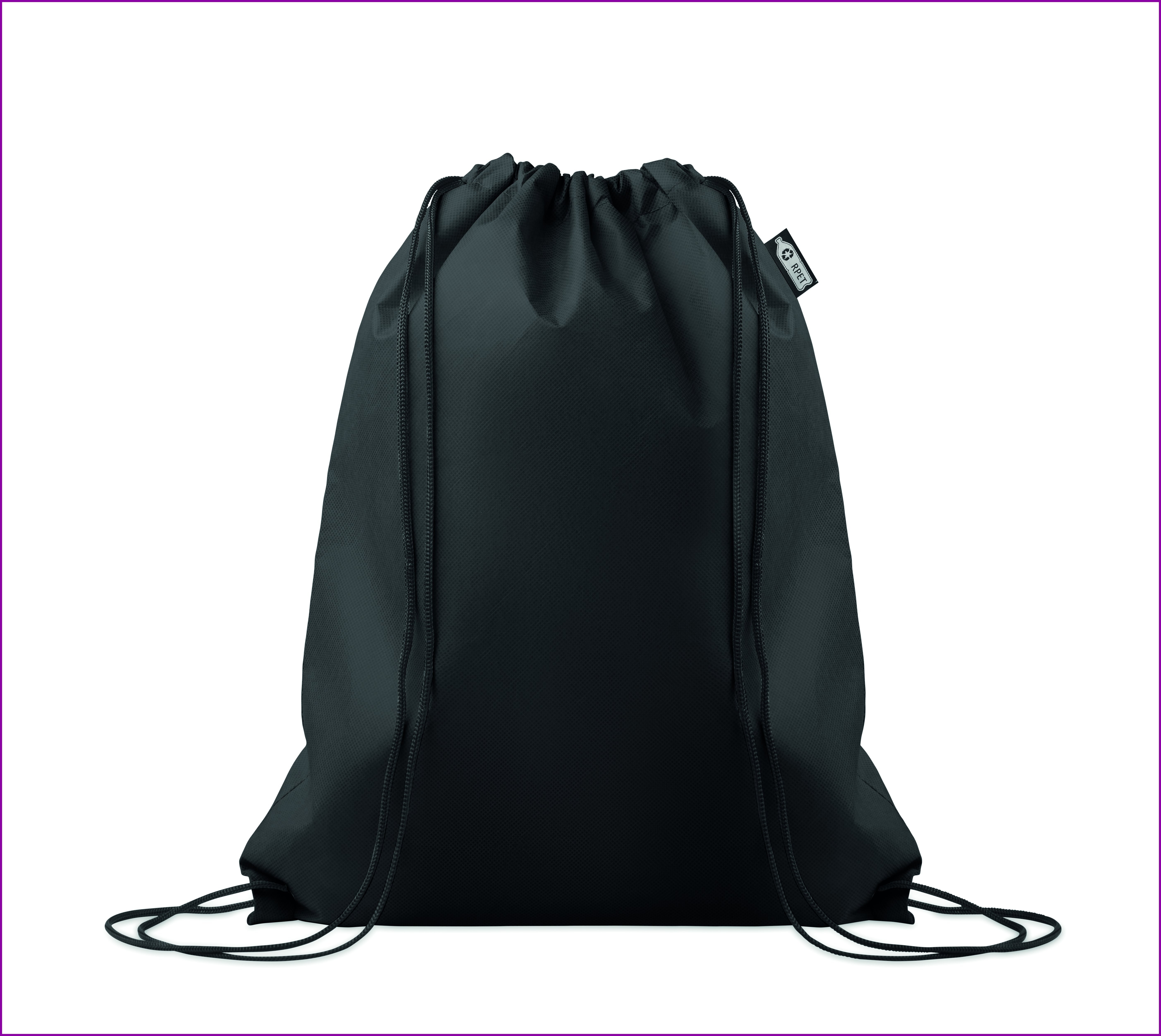 RPET-kuitukankaasta valmistettu narureppu jossa on polyesterinarua. 80 gr/m².