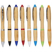 Ympäristöystävällinen kuulakärkikynä naksautusmekanismilla, varsi bambua, kiinnostavina yksityiskohtina kromipidike ja ABS-muovikoristeet. Bambumateriaalin väri voi vaihdella.Värit ja Koot