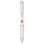 Pyydä tarjous painatuksesta tuotteseen Nash-kuulakärkikynä, värillinen runko ja varsi (sininen muste) Läpinäkyvä valkoinen