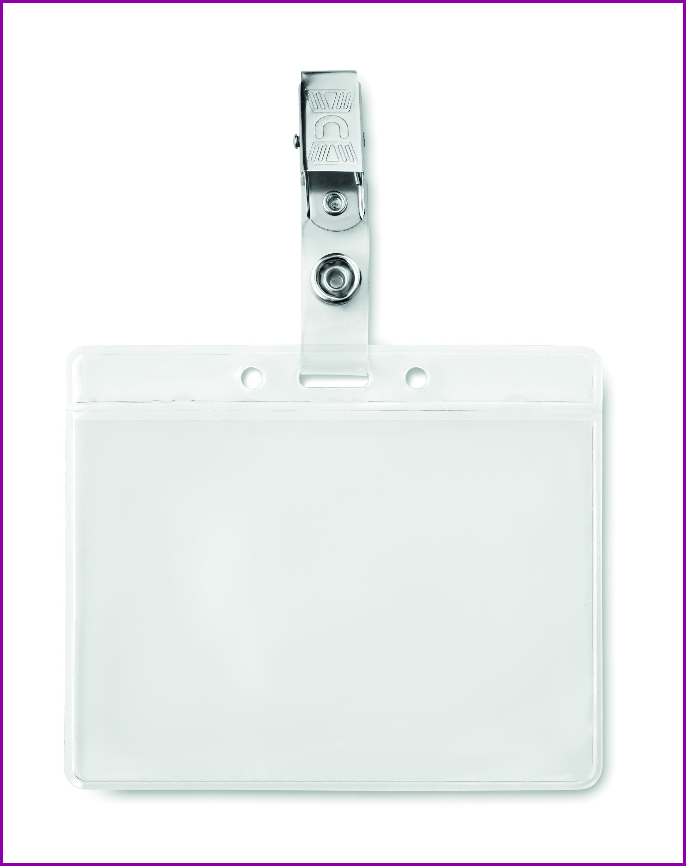 PVC nimilapputasku metalliklipsillä.