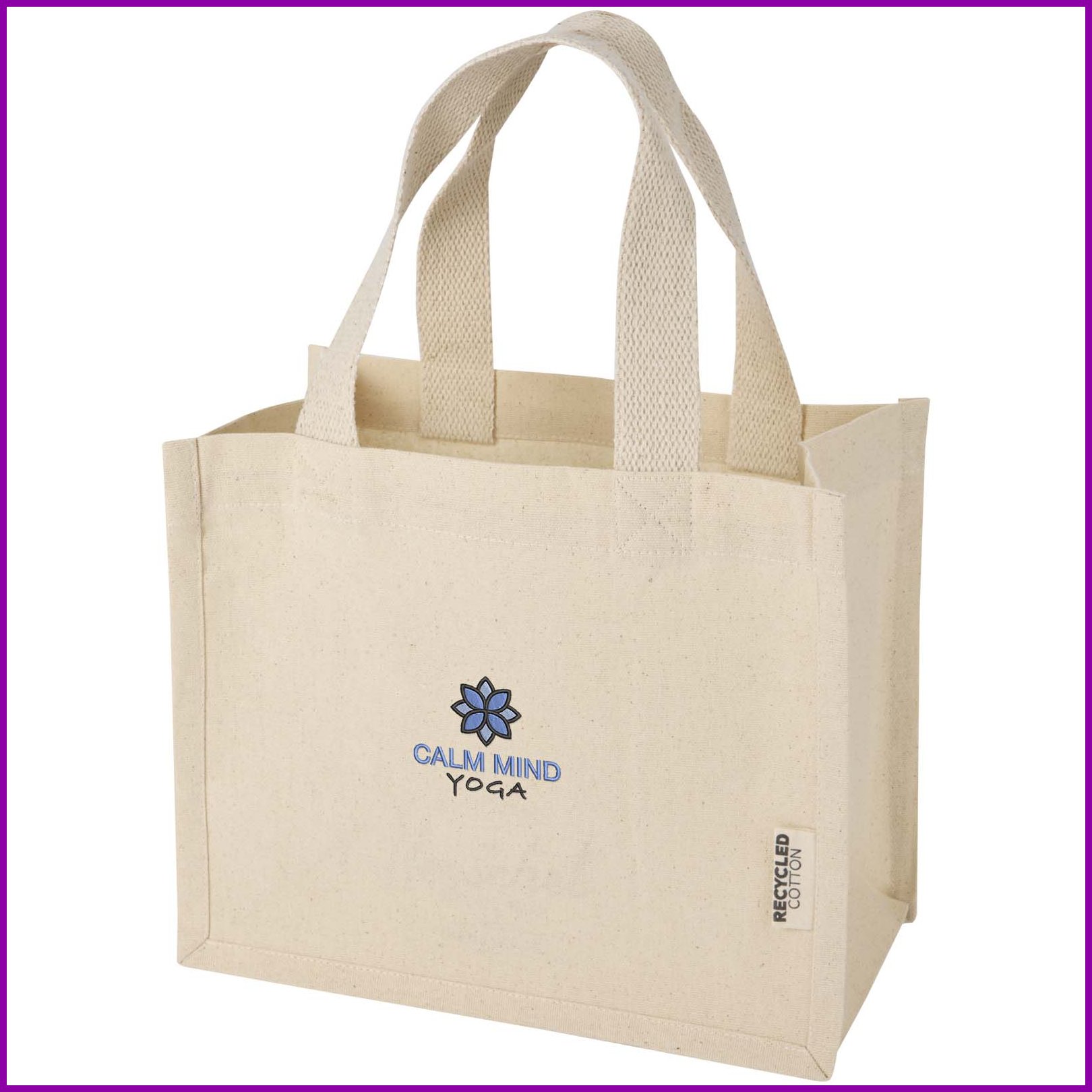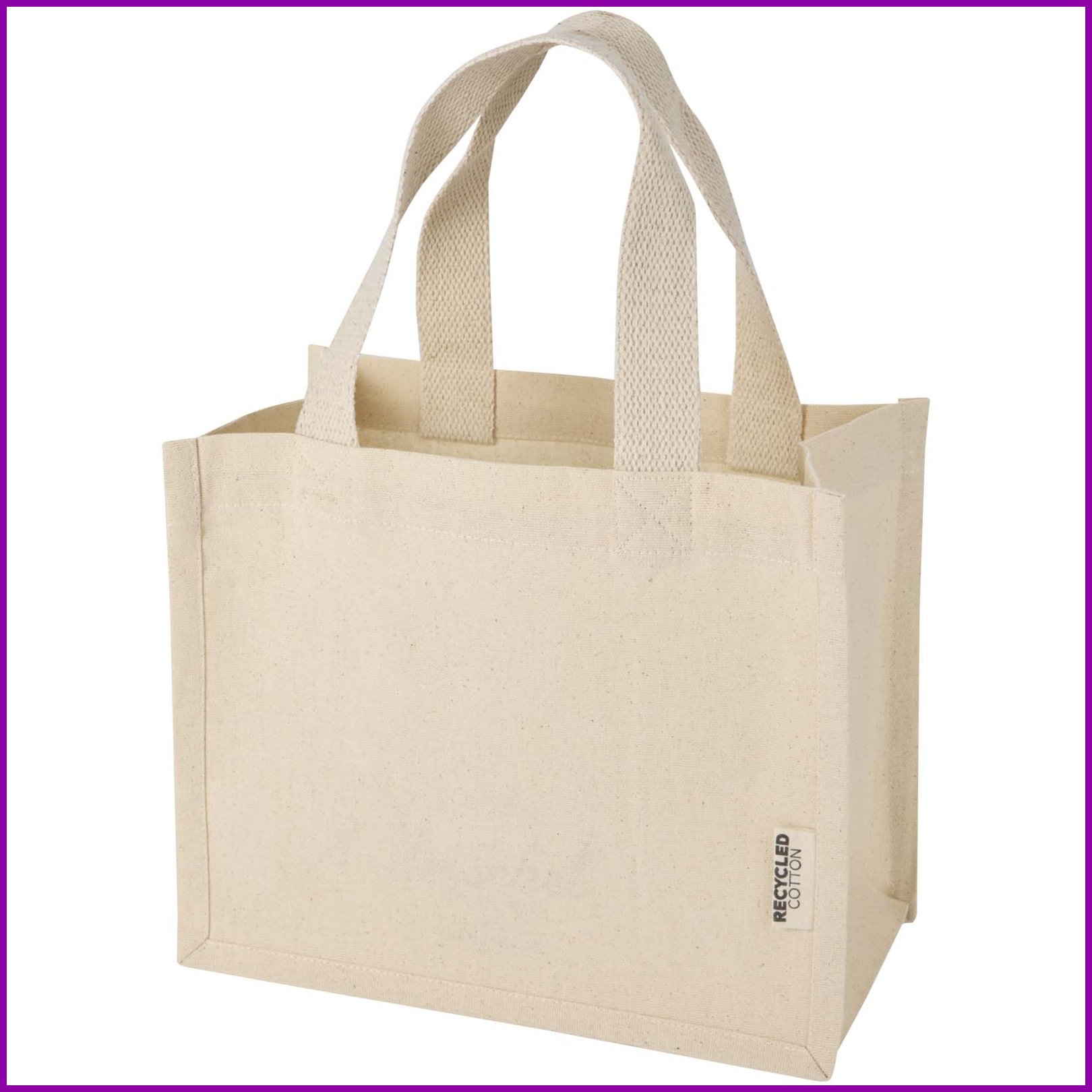 Pyydä tarjous painatuksesta tuotteseen Odessa 220 g/m²:n GRS-kierrätetystä puuvillasta valmistettu minikassi vahvikkeilla 9 litraa Natural