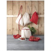 Suuri päälokero ja puuvillaiset kiristysnyörit. Kestää jopa 5 kg painon.