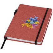 A5-kokoinen muistikirja, jonka kansi on valmistettu RPET-kankaasta. Sisältää 96 arkkia, 70 g/m², kierrätettyä viivapaperia, kynäpidike ja nauhamerkki. Pakattu kartonkisuojukseen.Värit ja Koot