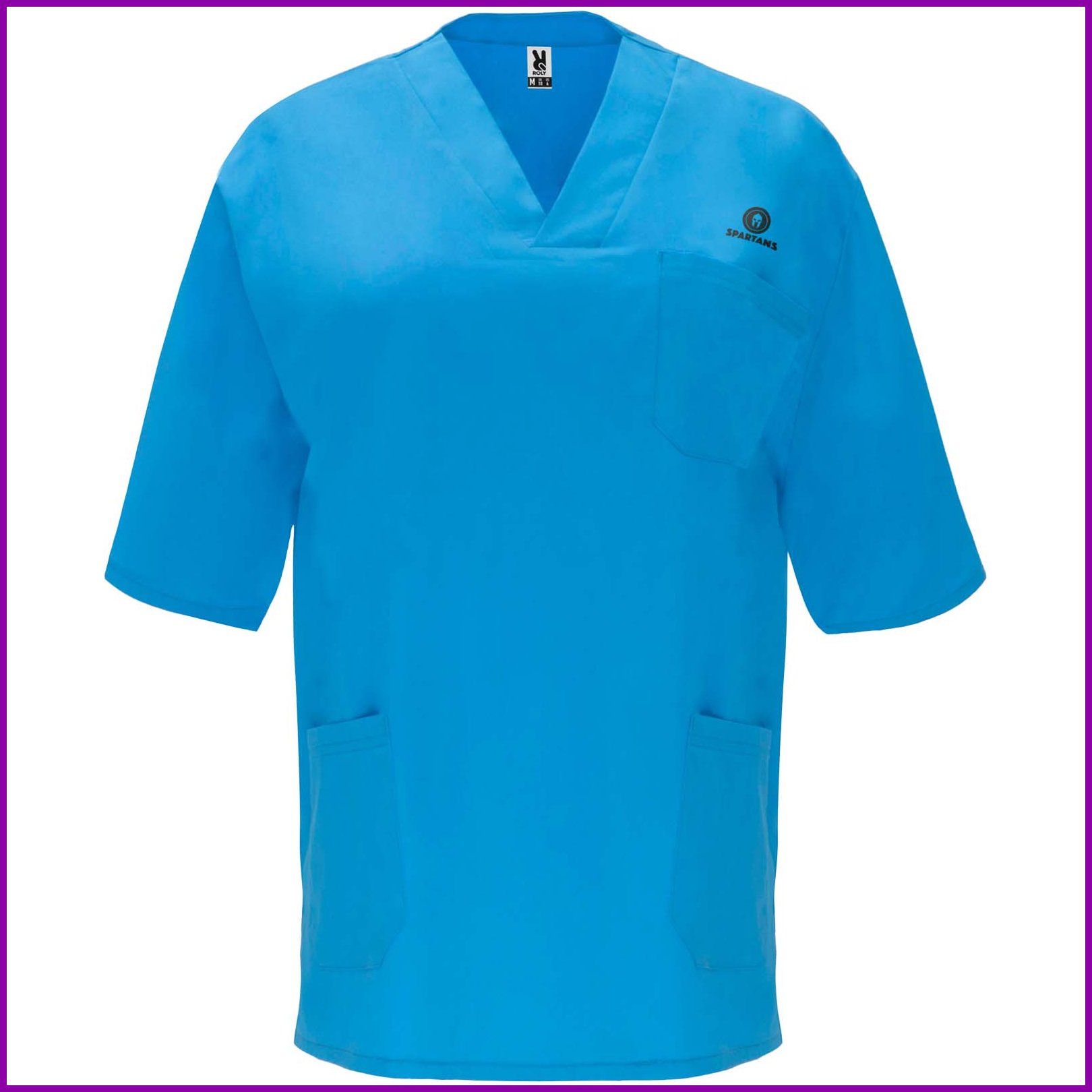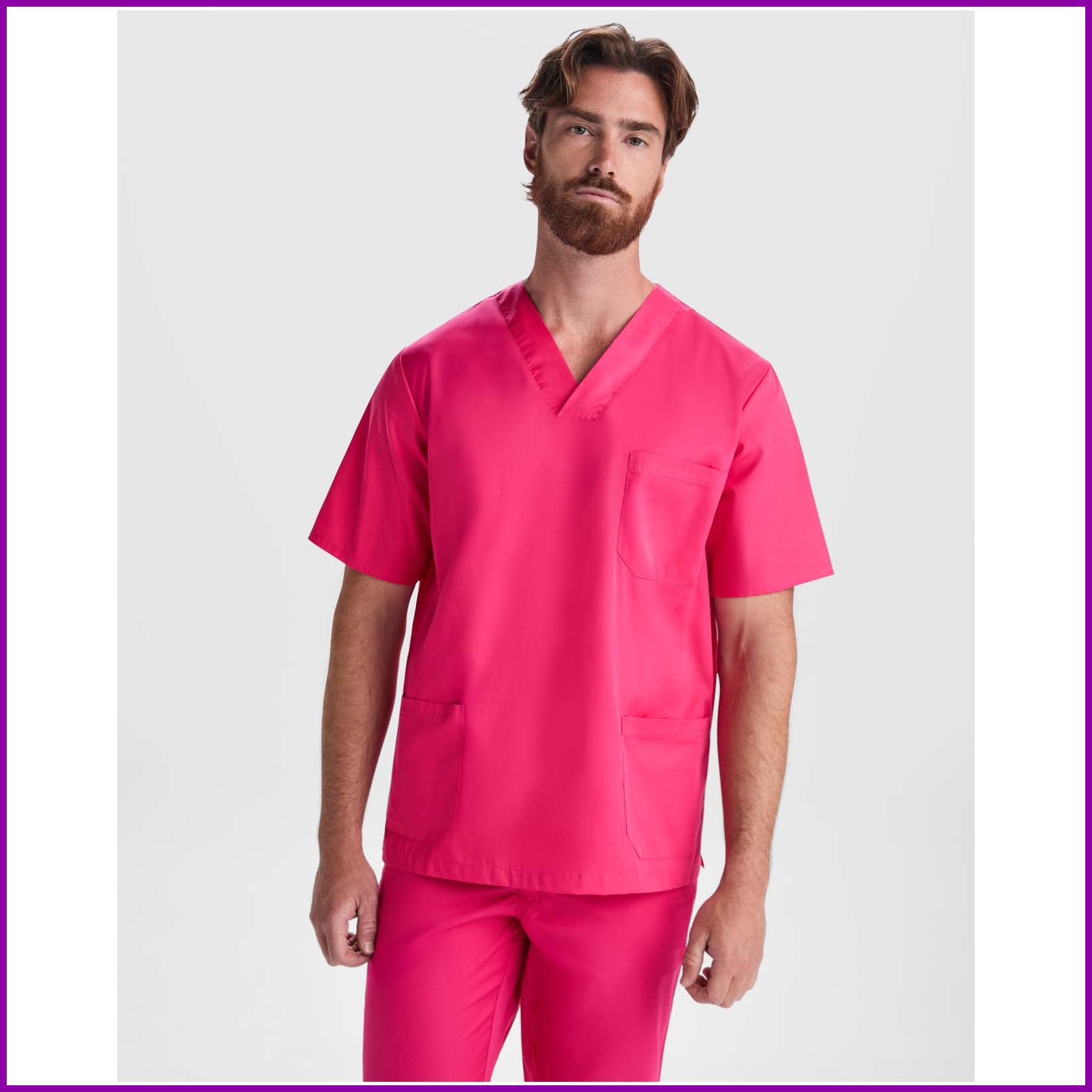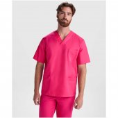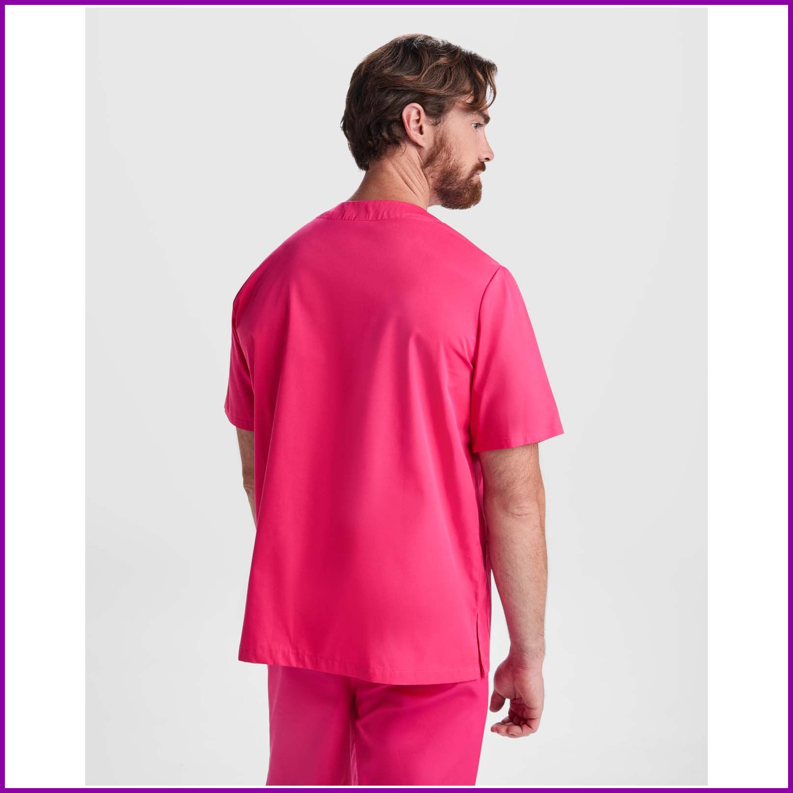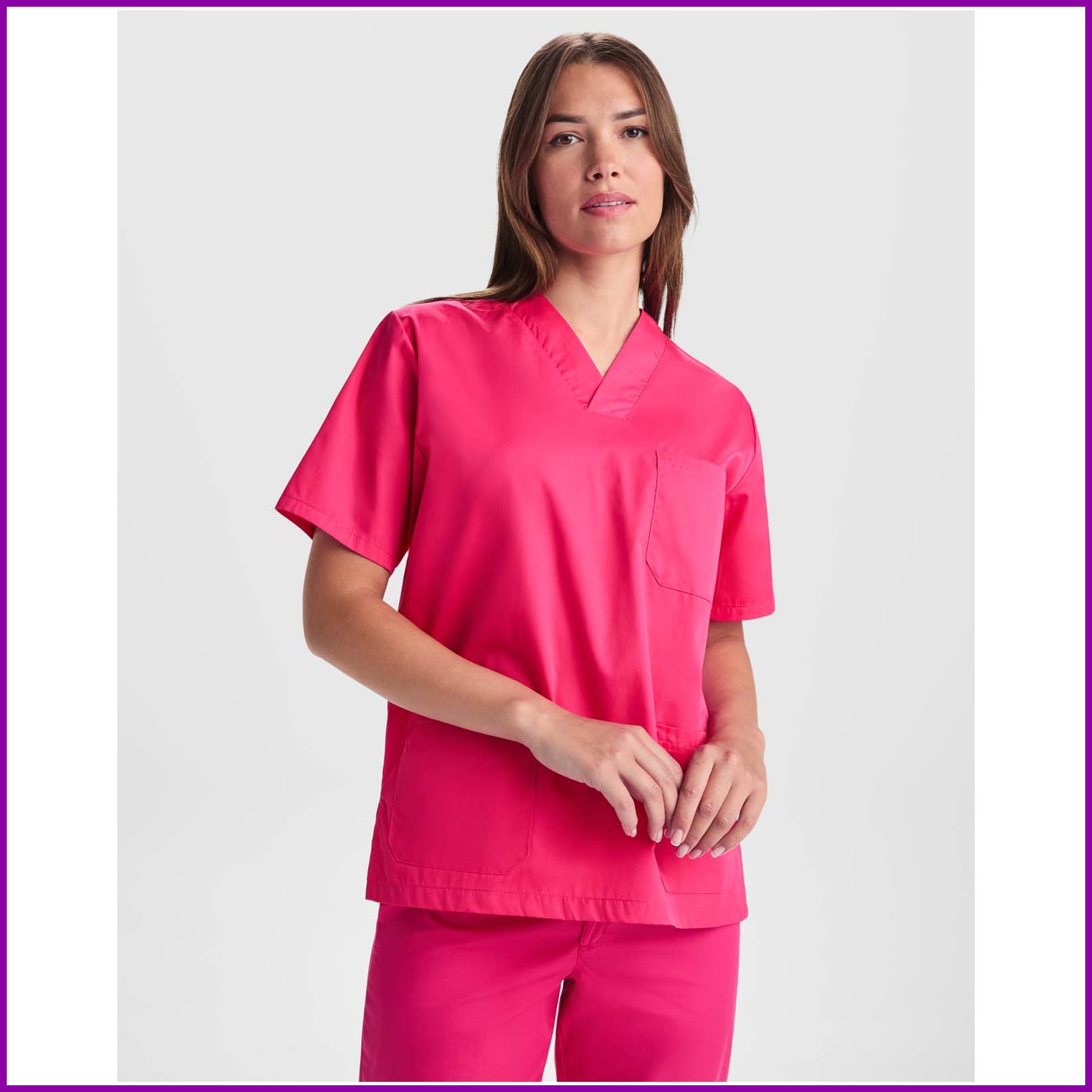Lyhythihainen unisex-työpaita. Ristikkäinen pääntie. Rintatasku ja kaksi sivutaskua. Sivuhalkiot helmassa.Värit ja Koot