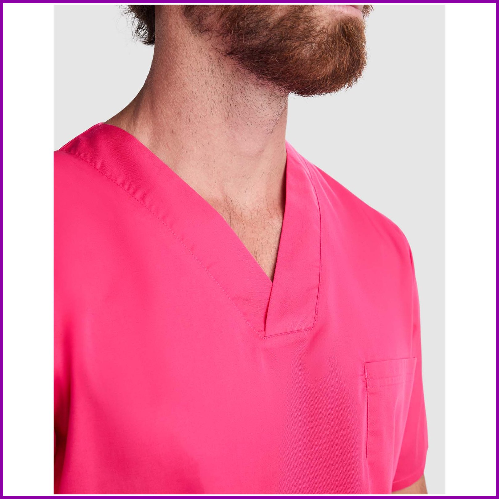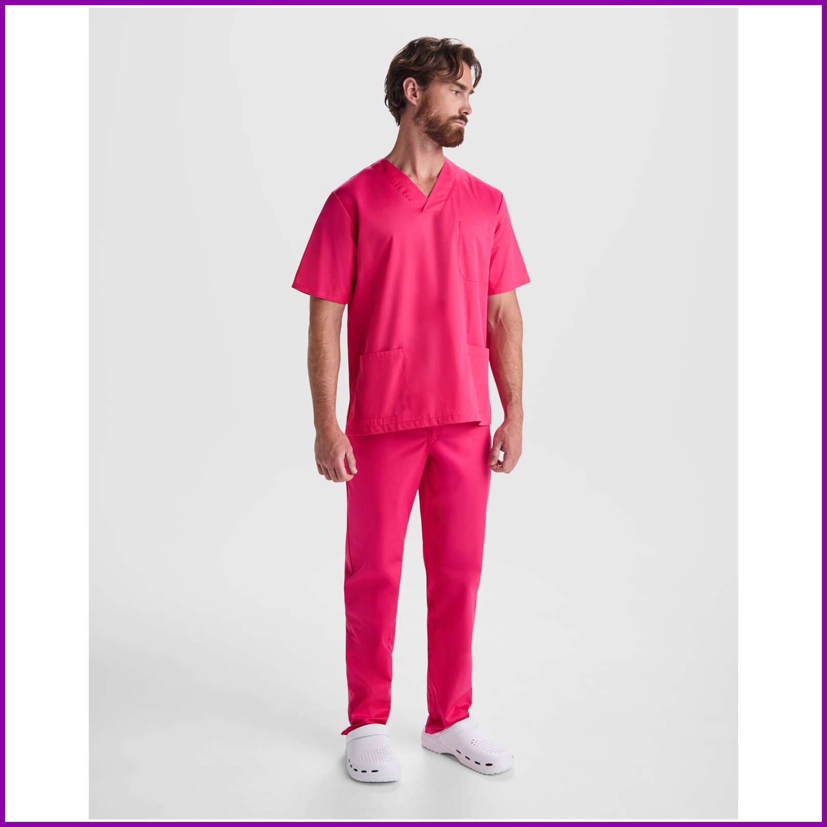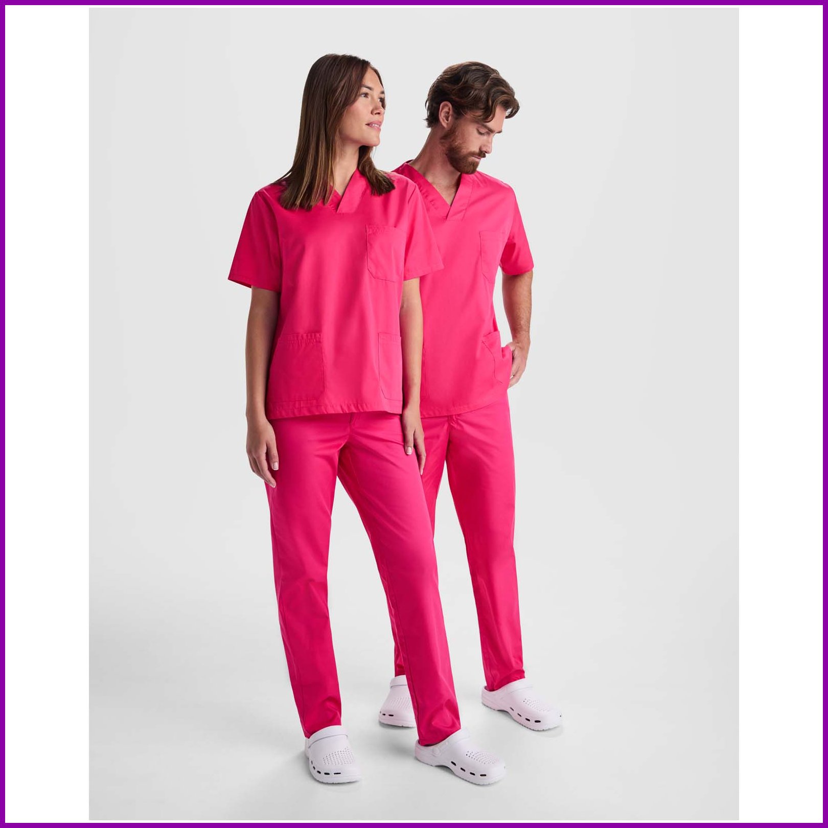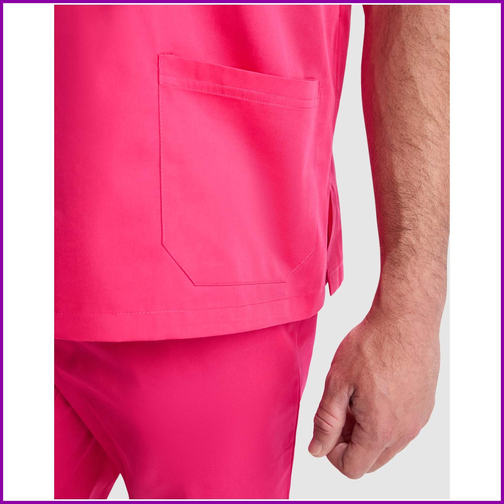 Lyhythihainen unisex-työpaita. Ristikkäinen pääntie. Rintatasku ja kaksi sivutaskua. Sivuhalkiot helmassa.Värit ja Koot