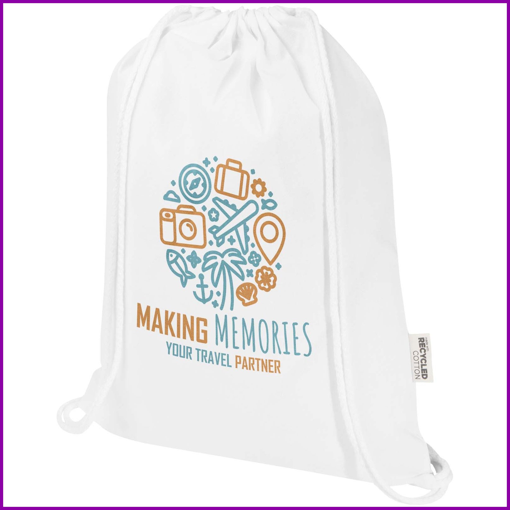 Kiristysnyörillä varustettu Peru Blend laukku on valmistettu 60-prosenttisesti GRS-sertifioidusta kierrätyspuuvillasta ja 40-prosenttisesti GRS-sertifioidusta RPET-muovista, joten se on kestävä mutta kevyt vaihtoehto jokapäiväiseen käyttöön. Se on helppo kantaa selässä tai olalla ja siinä on suuri päälokero, jossa on puuvillainen kiristysnyöri, joka mahdollistaa nopean avaamisen ja sulkemisen. 180 g/m²:n kankaasta valmistettu kassi on kestävä ja tarjoaa runsaasti tilaa logon tai tekstin lisäämiselle, joten se sopii erinomaisesti ilmaislahjaksi brändisi tai kampanjasi mainostamiseen. Tämän laukun painatusmenetelmät ovat myös GRS-sertifioituja, mikä varmistaa läpinäkyvän ja täysin sertifioidun toimitusketjun. Laukku kestää jopa viiden kilon painon.Värit ja Koot