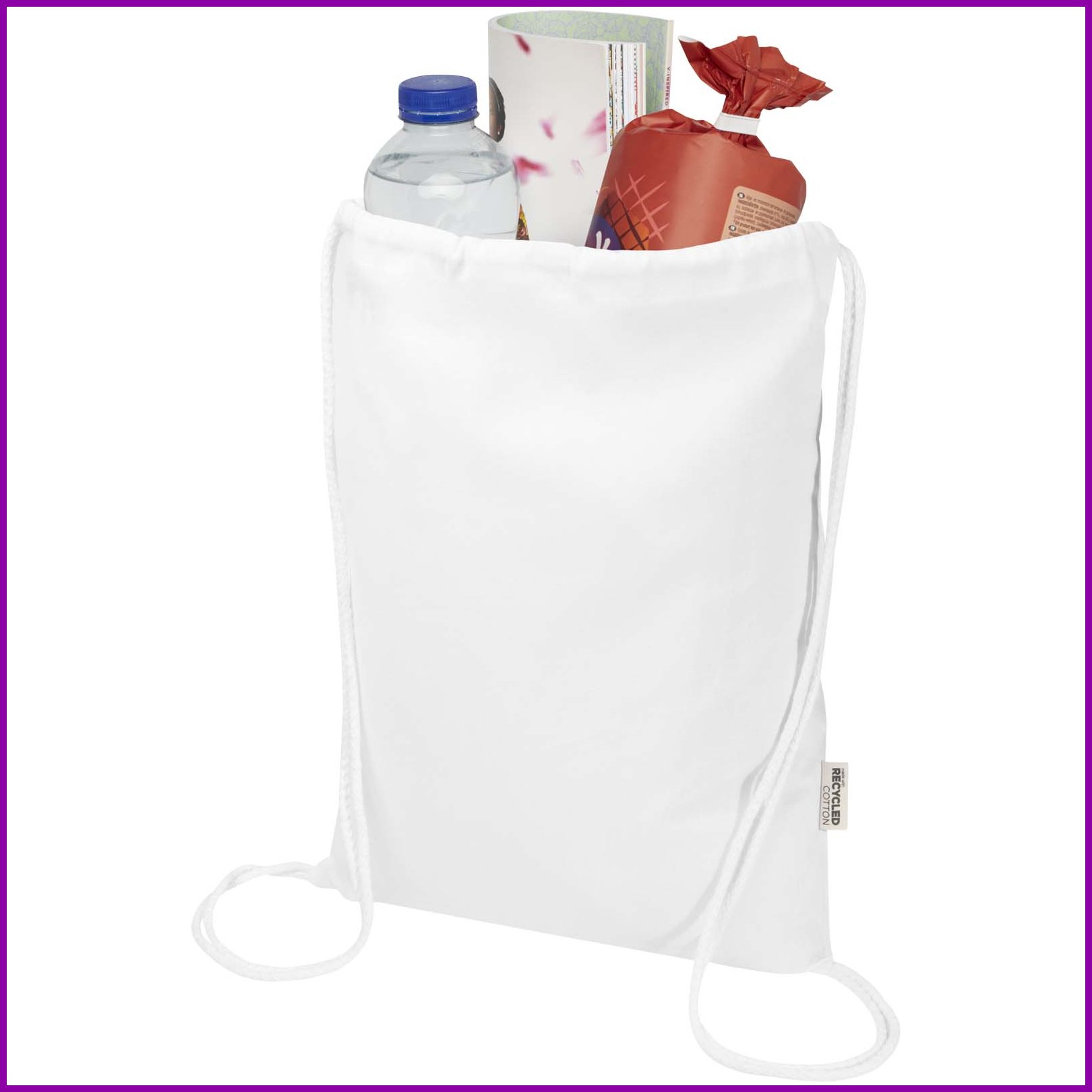 Pyydä tarjous painatuksesta tuotteseen Peru Blend 180 g/m²:n GRS-kierrätetystä materiaalista valmistettu 5 litran narureppu Valkoinen
