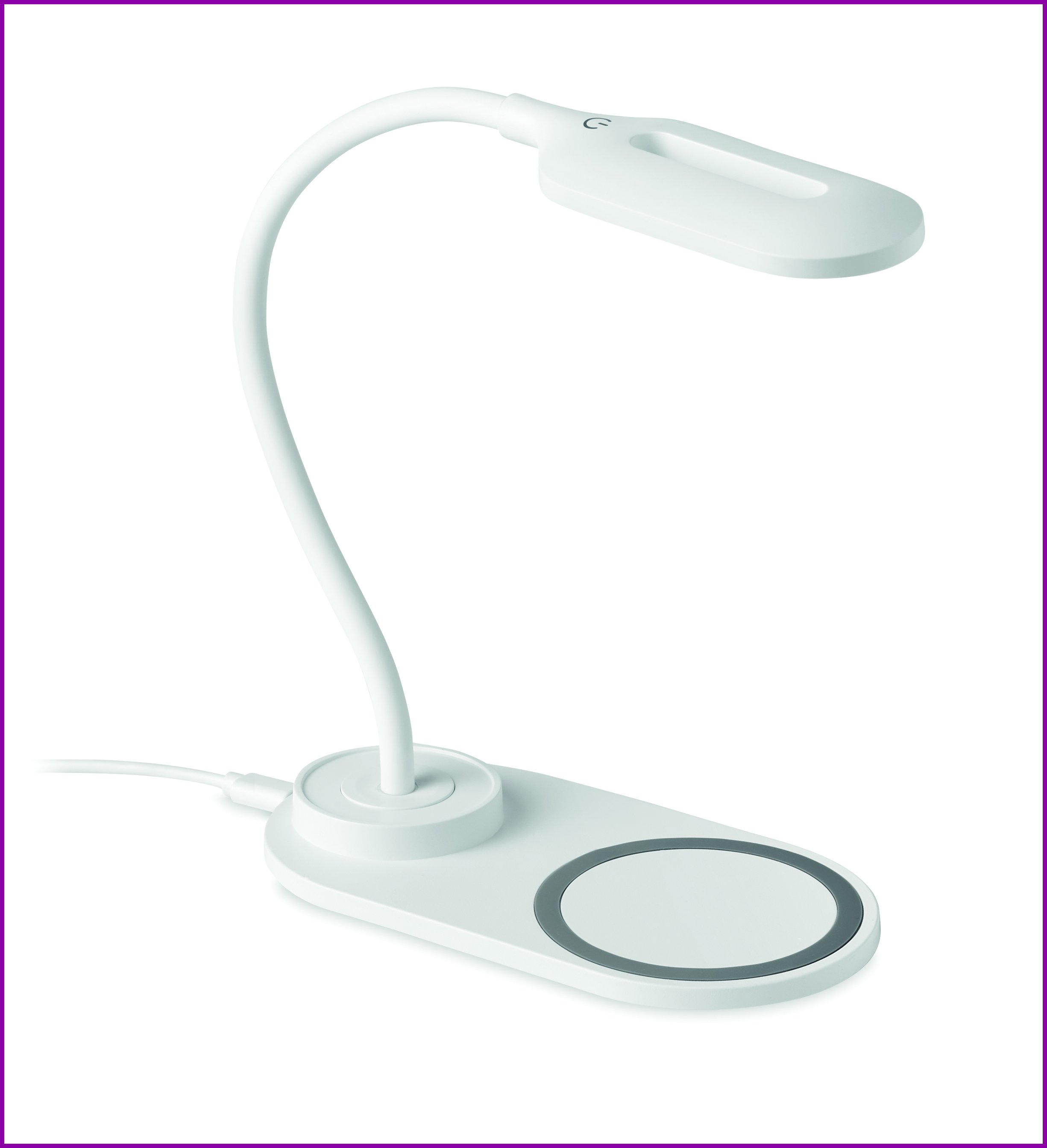 ABS 10 LED- valon pöytälamppu langattomalla latausasemalla, latauksen lähtövirta DC 9V/1.1A (10W) Yhdistä laturi tietokoneeseen ja aseta älypuhelin alustalle aloittaaksesi latauksen.