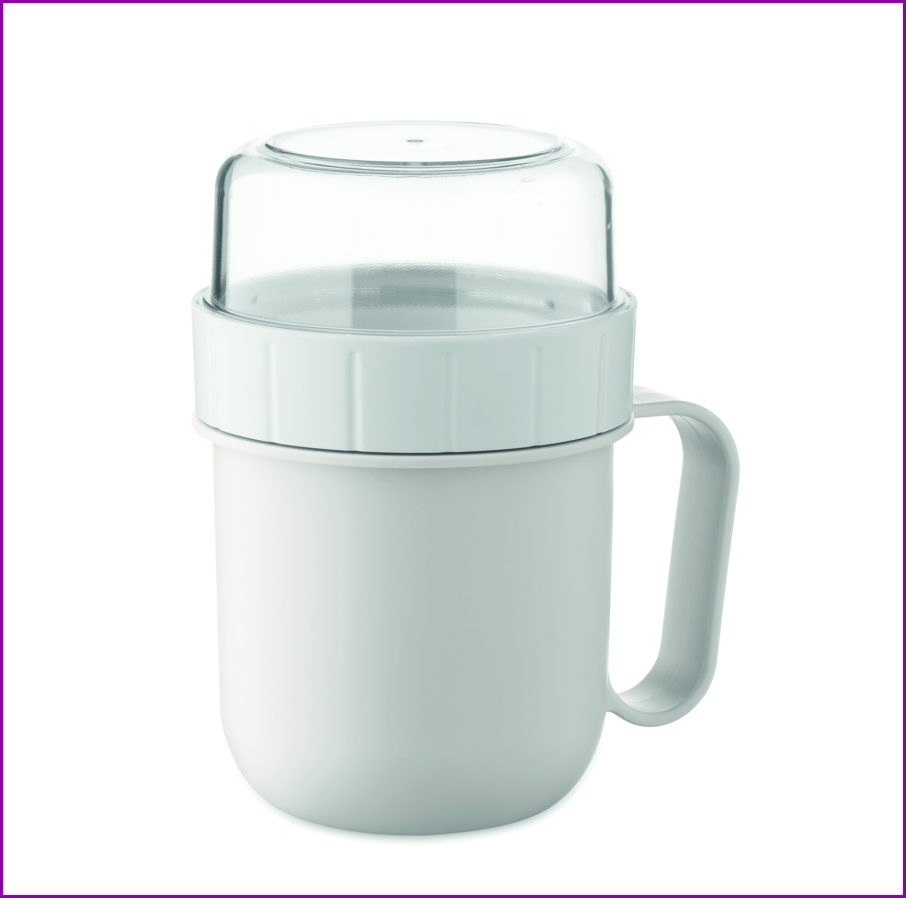 Aamiaista tai brunssia mukaan otettavaksi tarkoitettu kuppi PP- ja PS-korkissa. Sisältää kaksi erillistä rasiaa, jotka pitävät ainekset erillään. Tilavuus: 450 ml ja 160 ml. Vuotamaton.