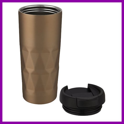Kaksiseinäinen kuparityhjiöeristetty kahvimuki, jossa on tiivis kierrekansi ja geometrinen kuviointi. Eristetty 18/8 ruostumaton teräs pitää juoman kuumana tai kylmänä useita tunteja. BPA-vapaa, testattu ja hyväksytty Saksan elintarviketurvallisuuslainsäädännön (LFGB) mukaisesti, sekä ftalaattipitoisuus testattu REACH-asetusten mukaisesti. Tilavuus on 450 ml. Suositellaan pestäväksi käsin. Toimitetaan kierrätetystä kartongista valmistetussa lahjapakkauksessa.Värit ja Koot