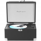 CD- ja musiikkisoitin USB-, AUX- ja langattomalla liitännällä. Mukana myös kuulokelähtö. Se on kannettava ja sen käyttöaika on 8 tuntia. Levysoitinta muistuttavan ulkoasunsa ansiosta tämä CD-soitin tuo kotiisi ripauksen vintagea.