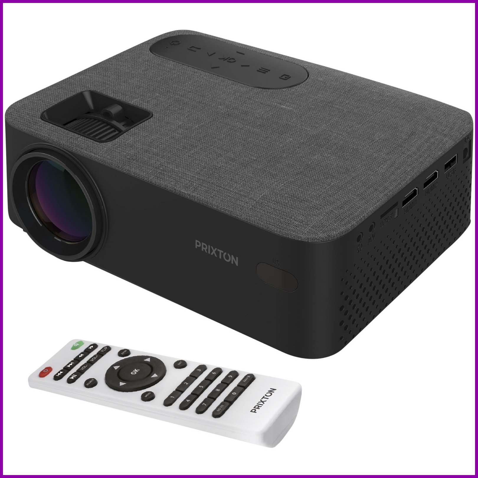 The projector plays back movies with maximum image quality. Supporting 1080P FULL HD, 1080i, 720p, 5761, 480p and 480i via HDMI. Vertical image correction system of +/- 15 degrees. Remote control and 2 speakers included. It's projects videos, audio, photos and text. real resolution of 1280 x 720. lamp with output of up to 5,000 lumens. White LED with 100 ANSI lumens. Contrast 500:1. projection distance up to 5 meters. Direct connection of all types of players via HDMI. Input: VGA, 2xHDMI, USB2.0, MicroSD, Aux in and AV IN.