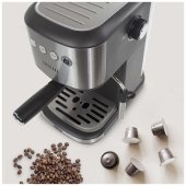 Toscana-kahvinkeitin käyttää italialaista järjestelmää ja siinä on kaksoissuodatin, joka mahdollistaa kahden kahvin valmistamisen samanaikaisesti. Cappuccinojen valmistukseen löytyy sisäänrakennettu säädettävä höyrystin. Mukana kapseliadapteri, tippalukko, mukinlämmitin, mittalusikka ja kahvinpuristin. Kahvinkeittimessä on automaattinen sammutustoiminto 20 minuutin käyttämättömyyden jälkeen. Teho 850 W. 20 barin paine. Vesisäiliön tilavuus 1,25 l. ERP-energiansäästöjärjestelmä.