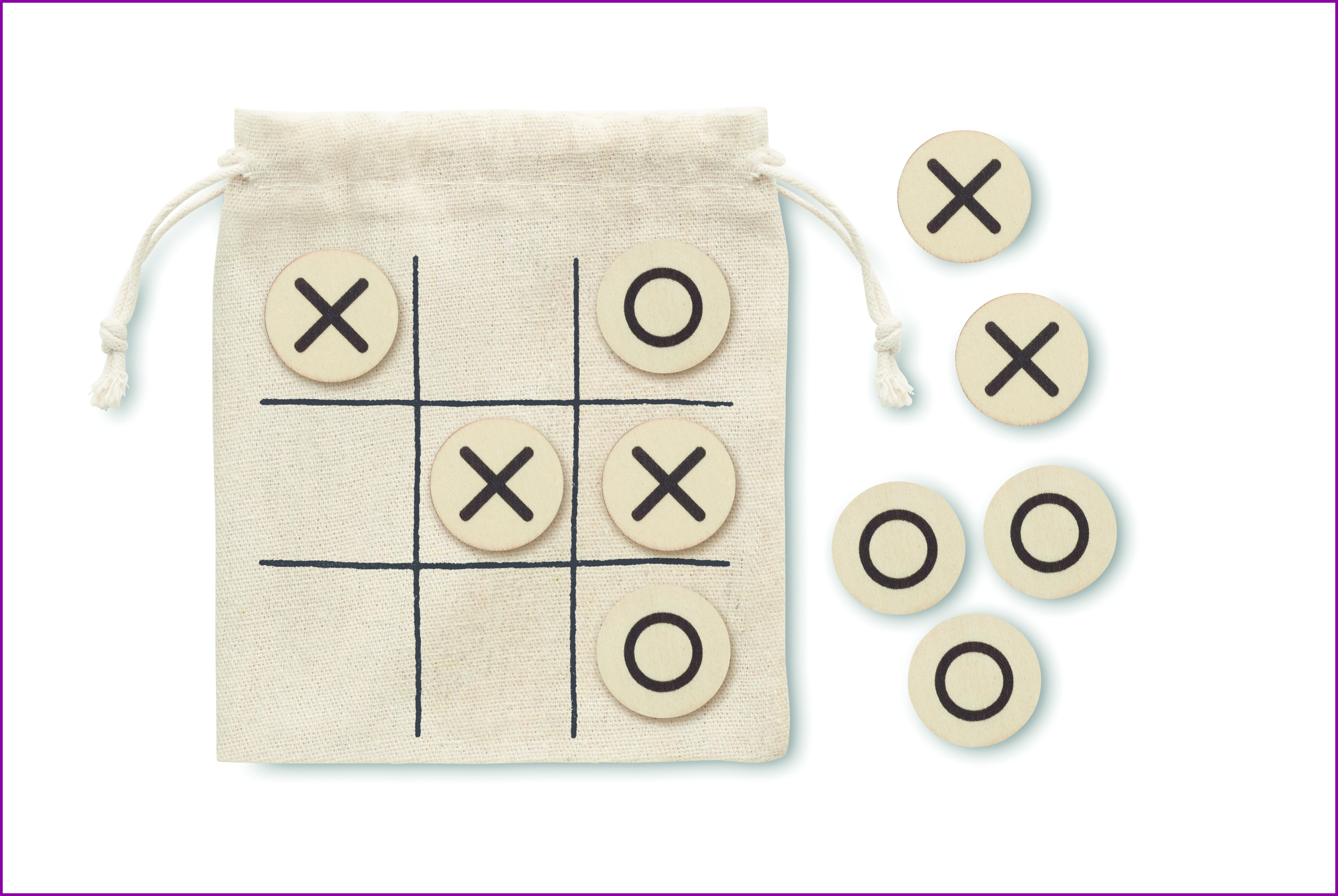 Puinen risti-nolla -peli. Toimitetaan puuvillapussissa.