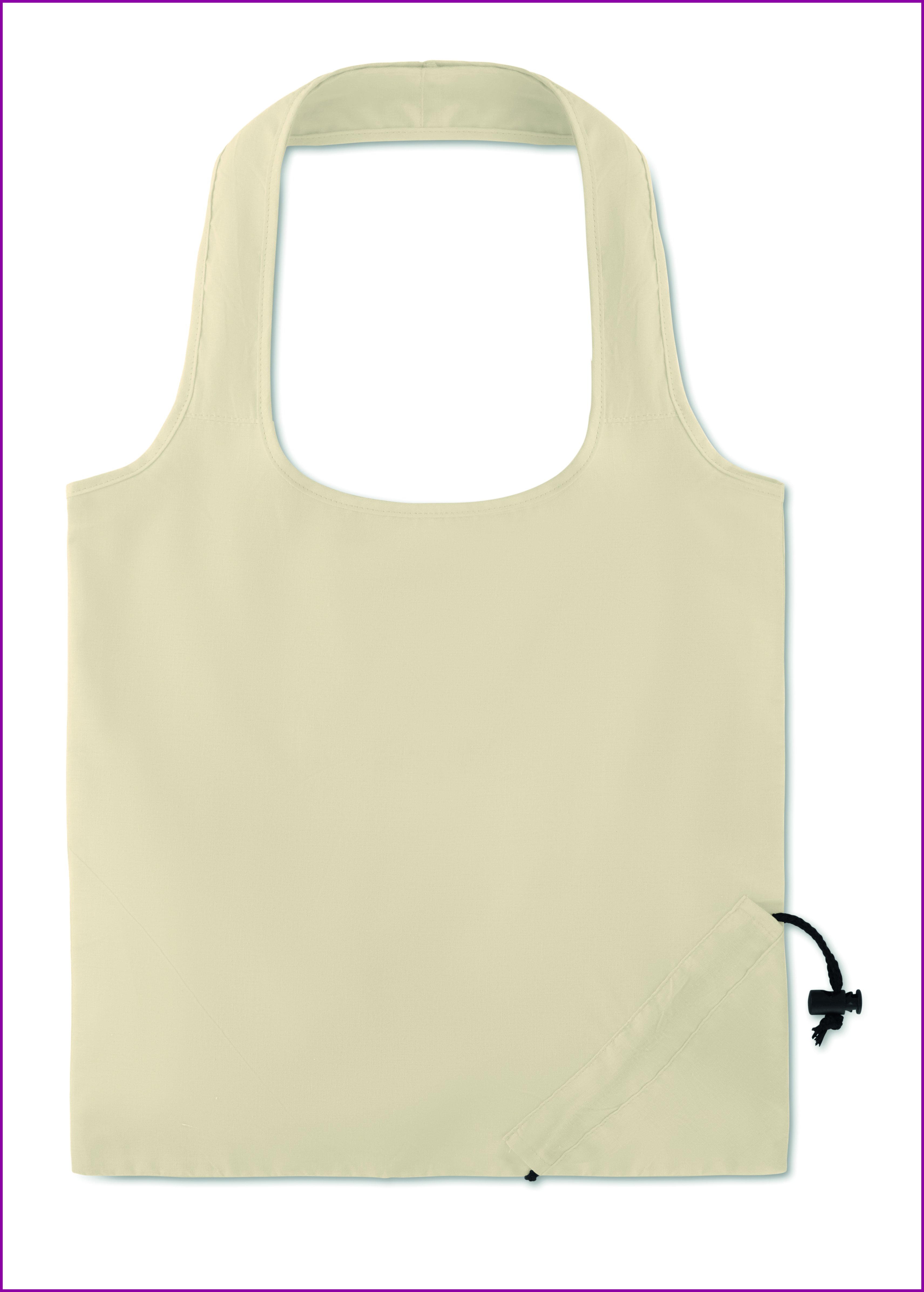 105 g/m² kokoontaitettava puuvillakassi, nyörikiinnitys kassin pussiosassa.