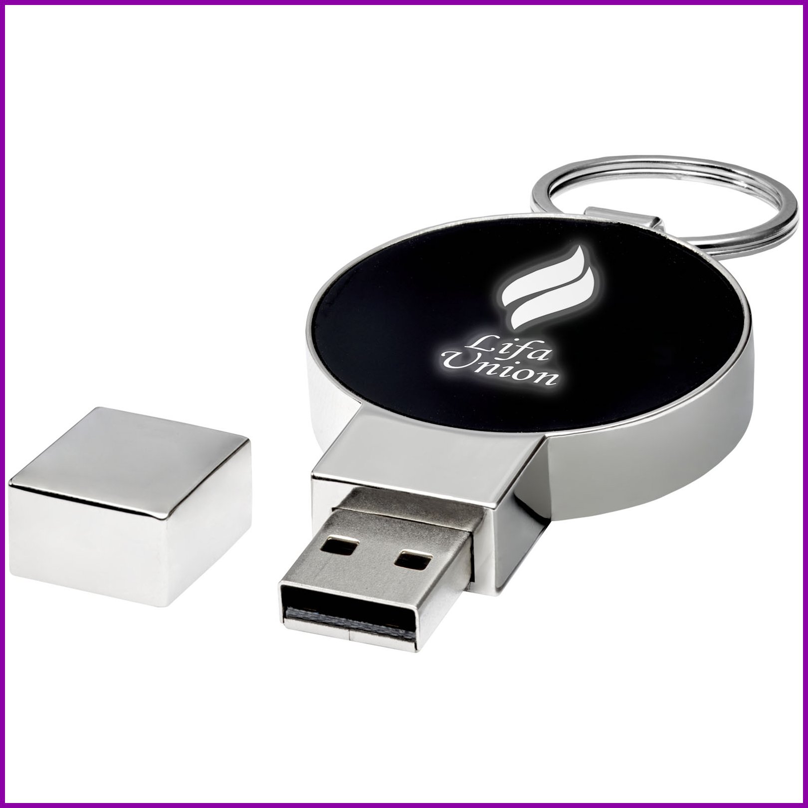 Pyydä tarjous painatuksesta tuotteseen Pyöreä valaiseva USB Musta Hopea Valkoinen