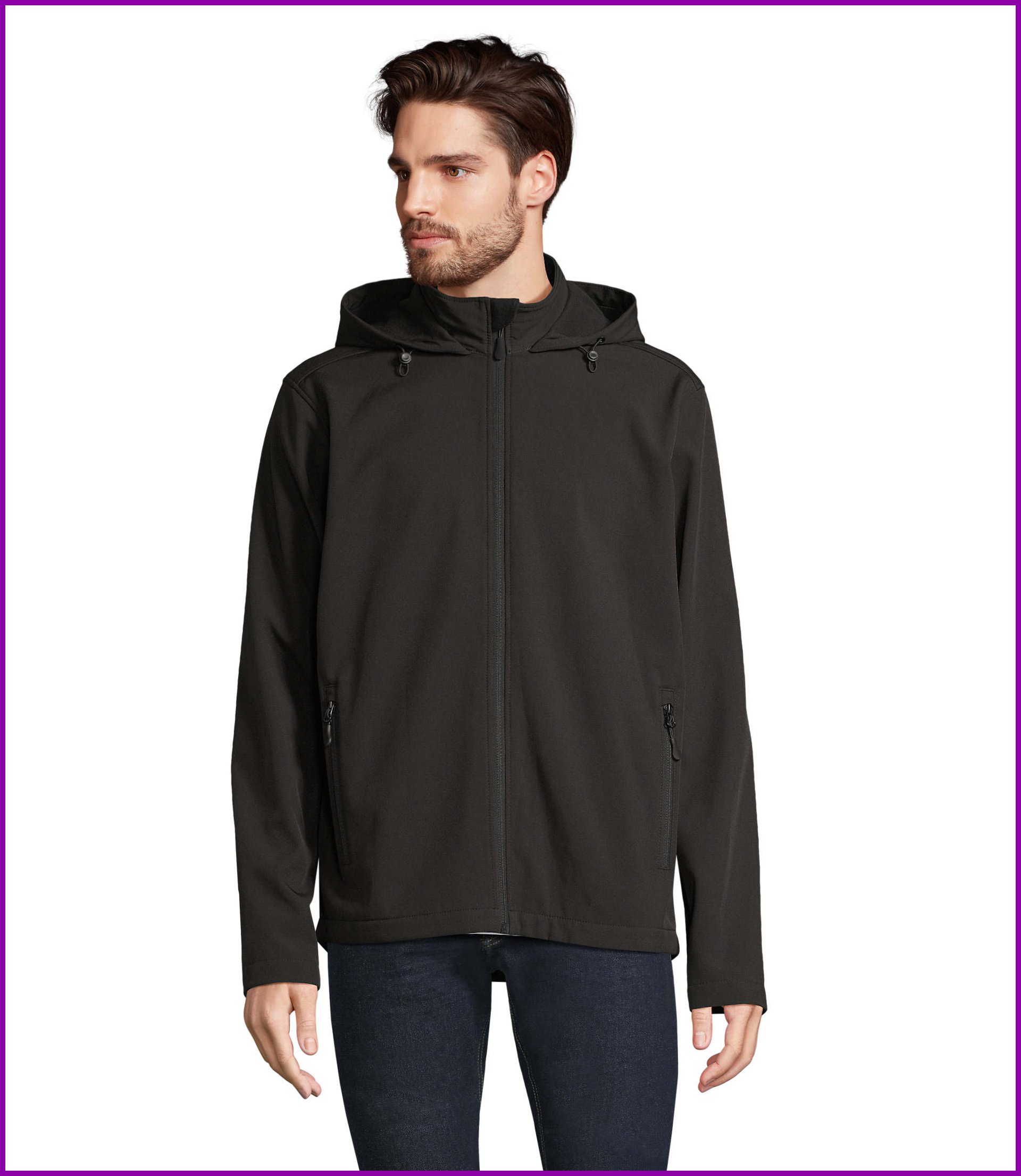 SOL'S RACE HOODED MEN, miesten softshell hupullinen takki, 100% kierrätettyä polyesteriä Polar fleece vuori: 100% kierrätettyä polyesteriä 2 kerrosta, Etukiinnitys ja sivutaskut mustalla nailon vetoketjulla Mustat vetoketjunvetimet Huppu kiristysnauhalla Hieman pidempi selkä. Kokojen vastaavuudesta, katso kokotaulukko tuotedokumentaatio-osassa.