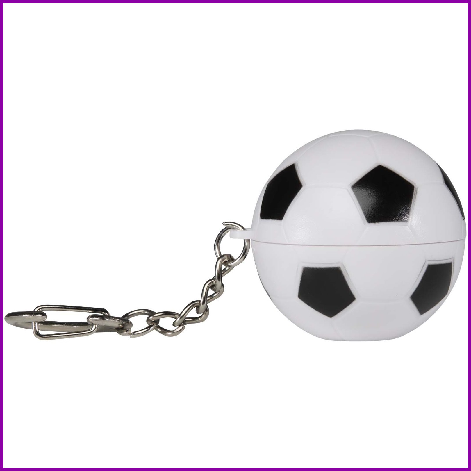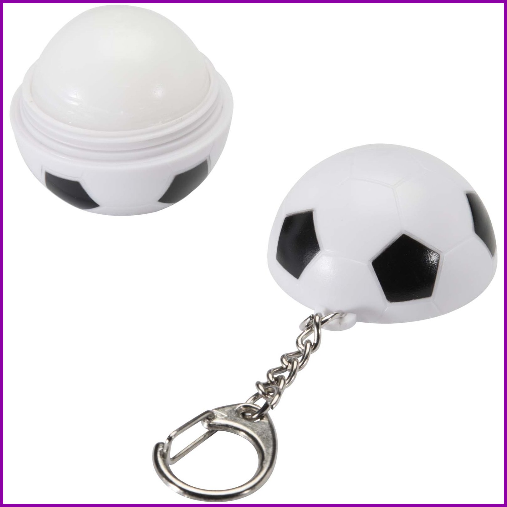 Jalkapallon muotoinen huulirasva avaimenperällä. Pitää huulesi pehmeinä. Kiinnitä laukkuun, avaimiin tai reppuun liikkeellä ollessasi. Vaniljan makuinen. SPF 15.Värit ja Koot
