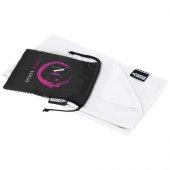 Imee kosteuden tehokkaasti ja kuivuu nopeasti: pestävä urheilupyyhe, joka on valmistettu kierrätetystä RPET-materiaalista. Toimitetaan pienessä, suljettavassa, kierrätetystä RPET-materiaalista valmistetussa pussissa kuljetusta varten. Pussissa on suuri logomerkintäalue (koko 15 x 11,5 cm). Myös pyyhe voidaan merkitä logomerkinnällä (koko 80 x 30 cm).Värit ja Koot