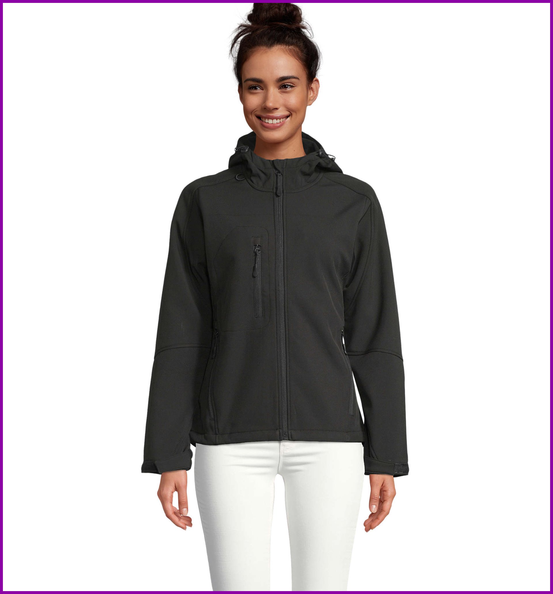 SOL'S REPLAY WOMEN, naisten huppullinen softshell, 94 % polyesteriä, 6 % elastaania, fleecevuori: 100 % polyesteriä, 3 kerrosta, 8000 mm vedenpitävä ja hengittävä kalvo softshell 340, 2 vetoketjullista sivutaskua ja 1 vetoketjullinen rintatasku, säädettävä kiristysnauha vyötäröllä, säädettävät hihansuut tarranauhalla, kiristysnauhallinen huppu. Kokoja koskevat tiedot löytyvät tuotetietojen osiosta.