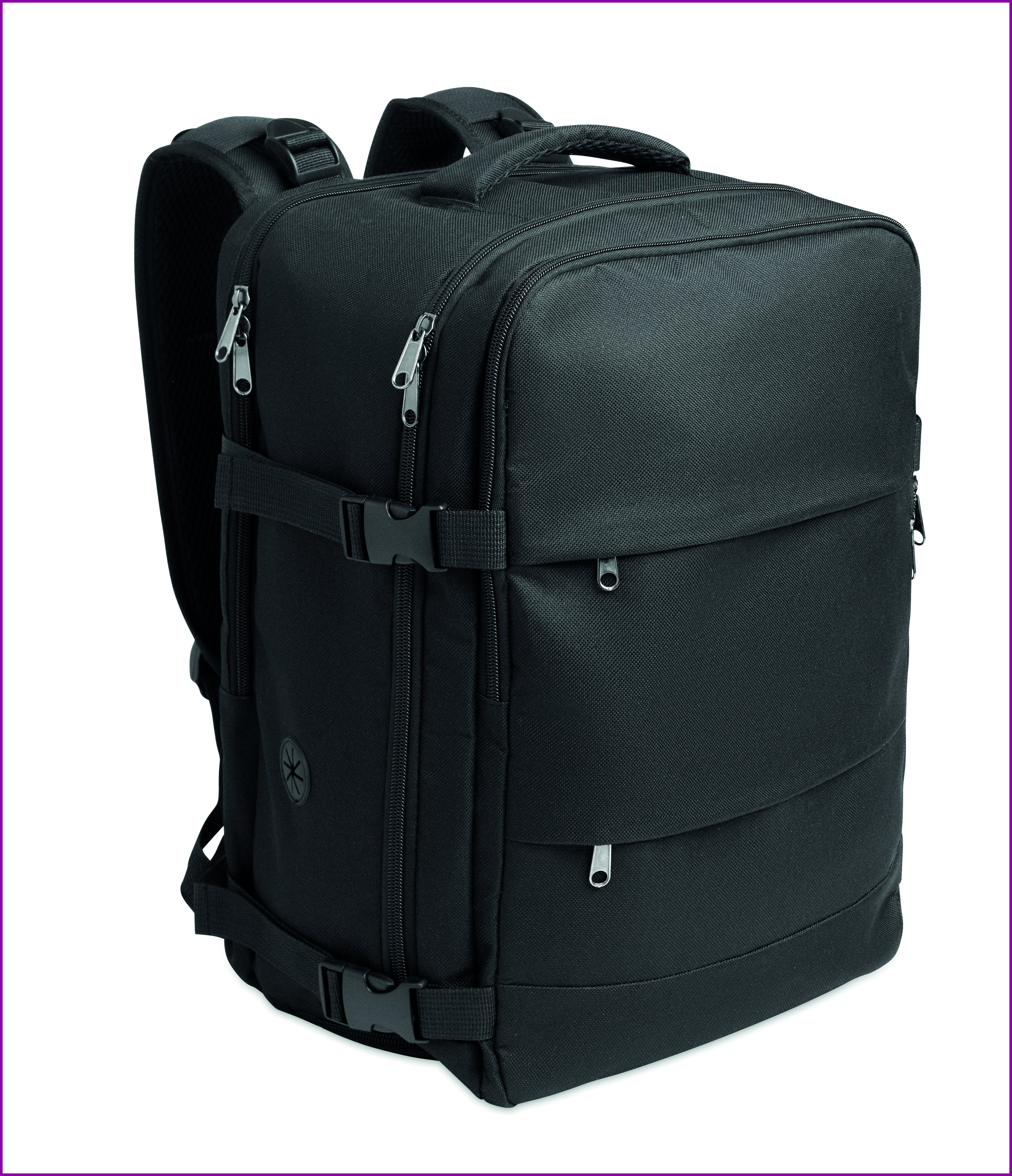 Käsimatkatava laajennettava reppu 600D RPET-polyesteriä, PU-selkäpuoli ja 180° aukko. Sisältää kenkälokeron, pehmustetun 15'' tietokoneen taskun, verkkohihnat, matkatavarahihnan ja sivusoljet.