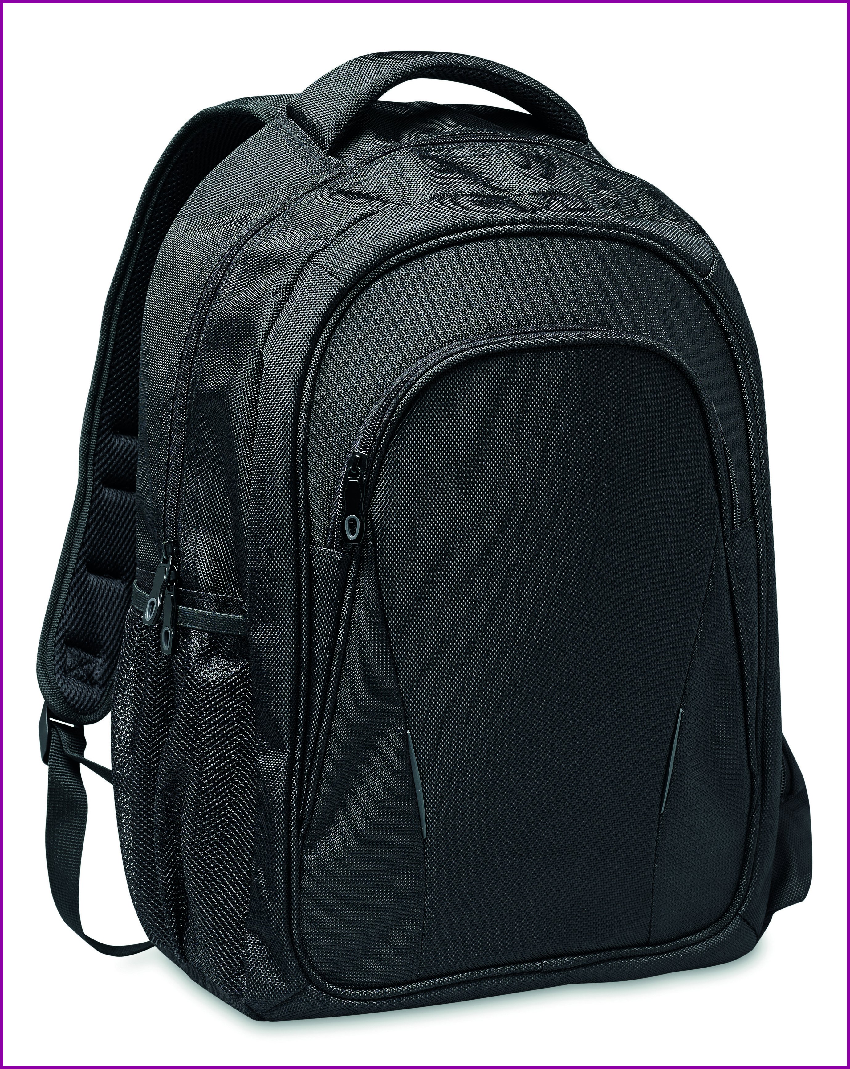 1680D polyesterinen reppu, 15 tuuman kannettavan tietokoneen taskulla. Sisältää useita taskuja ja kynänpidikkeen, pehmustettu selkä ja olkahihnat.
