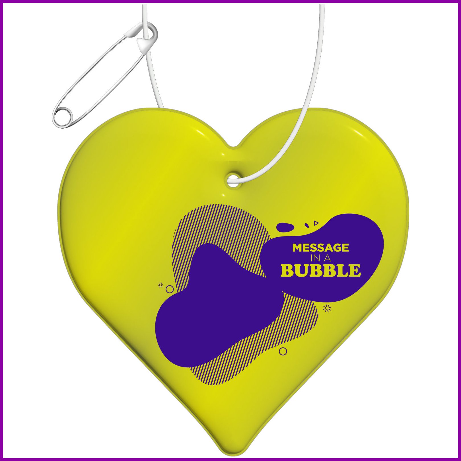 Pyydä tarjous painatuksesta tuotteseen RFX™ H-09 ripustettava TPU-heijastin, sydän Neonkeltainen