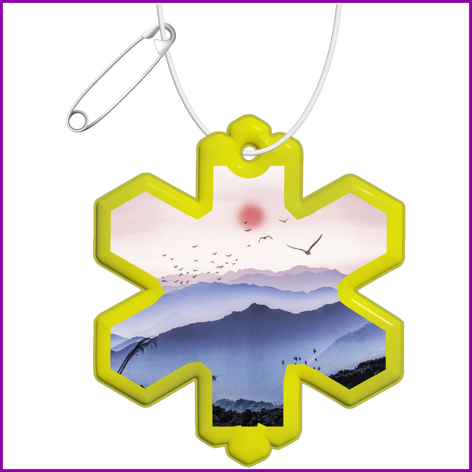 Pyydä tarjous painatuksesta tuotteseen RFX™ H-10 ripustettava PVC-heijastin, lumihiutale Neonkeltainen