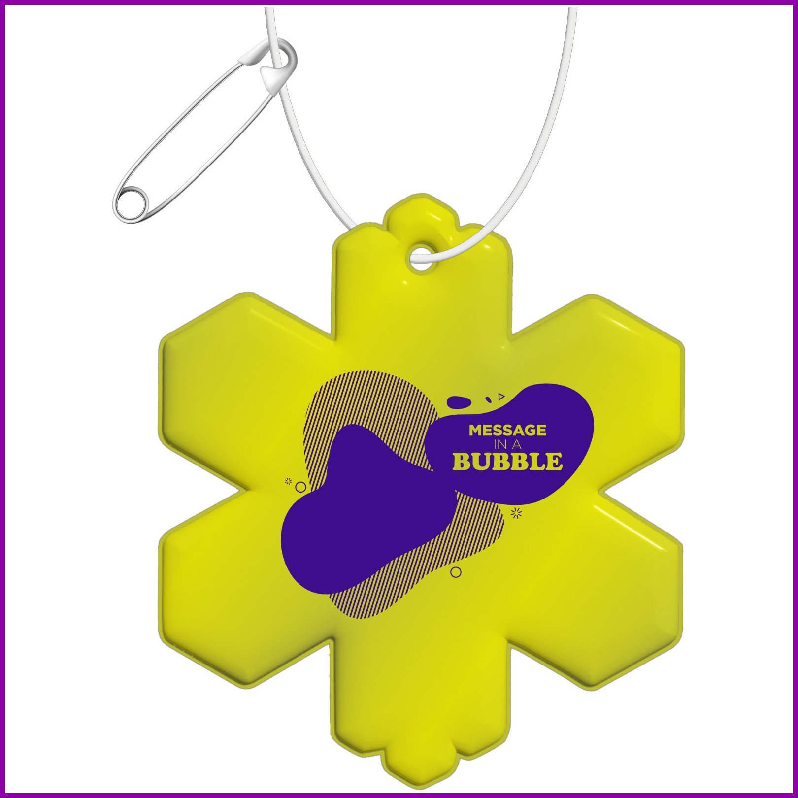 Pyydä tarjous painatuksesta tuotteseen RFX™ H-10 ripustettava TPU-heijastin, lumihiutale Neonkeltainen