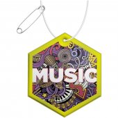 Pyydä tarjous painatuksesta tuotteseen RFX™ H-12 ripustettava PVC-heijastin, kuusikulmio Neonkeltainen