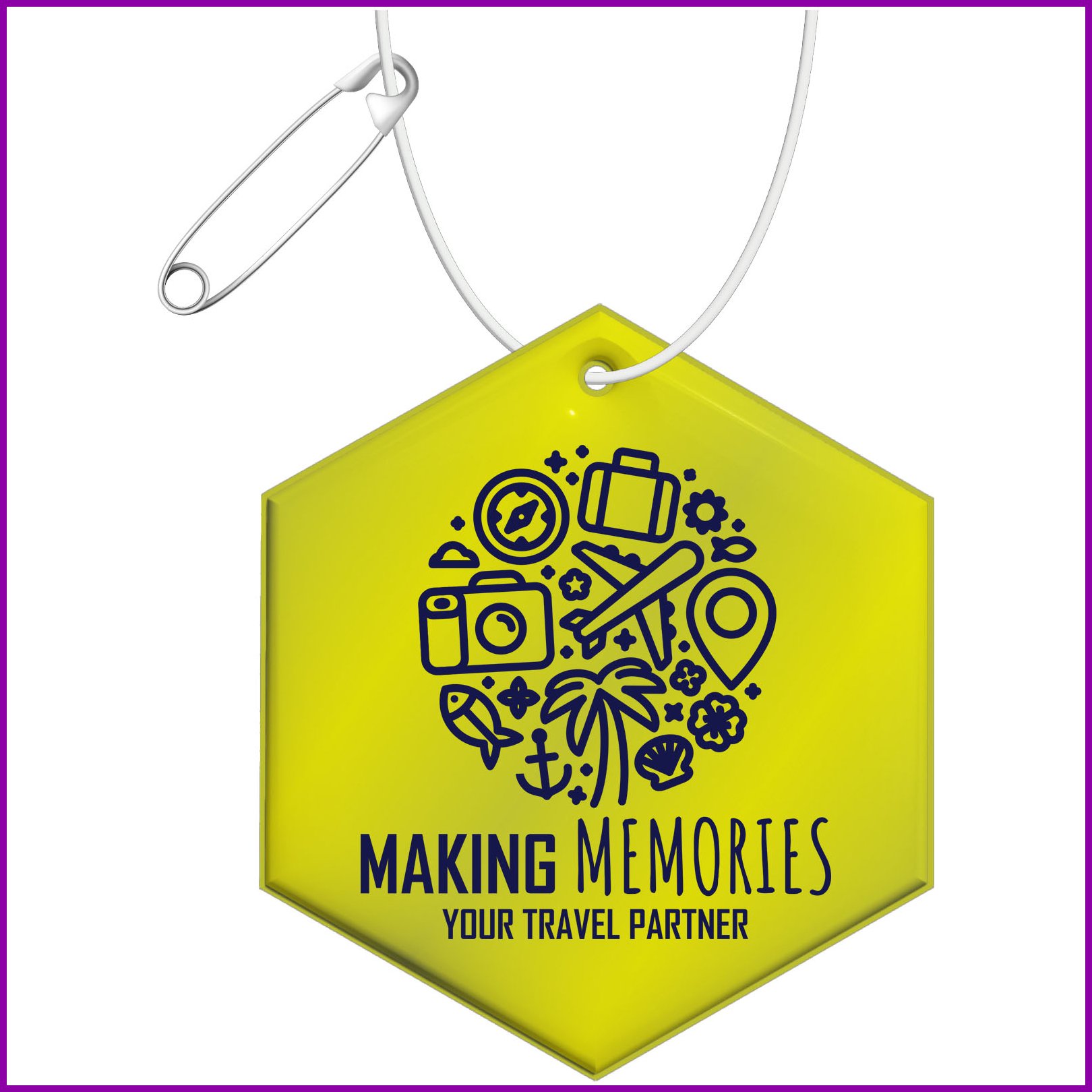 Pyydä tarjous painatuksesta tuotteseen RFX™ H-12 ripustettava TPU-heijastin, kuusikulmio Neonkeltainen