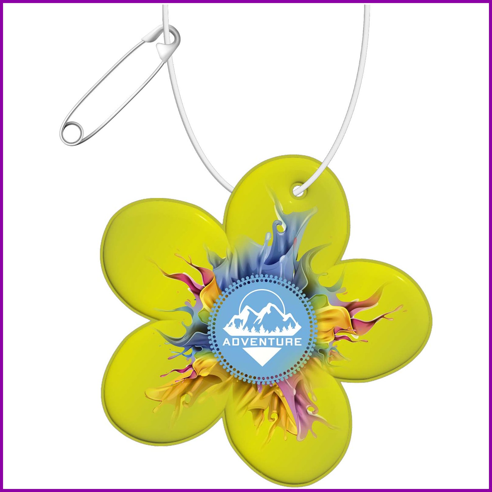 Pyydä tarjous painatuksesta tuotteseen RFX™ H-13 kukan muotoinen kevyt PVC-heijastin Neonkeltainen