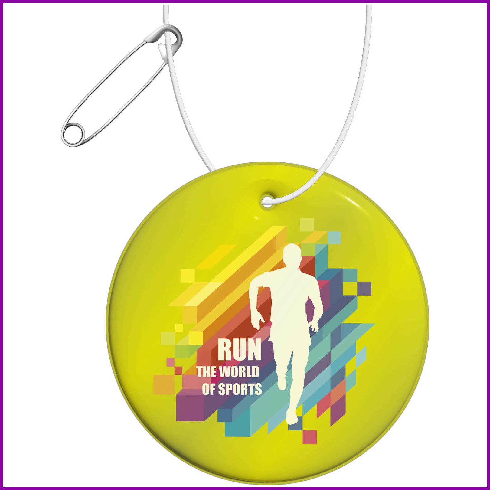 Pyydä tarjous painatuksesta tuotteseen RFX™ H-16 PVC roikkuva heijastin, pyöreä, koko M Neonkeltainen