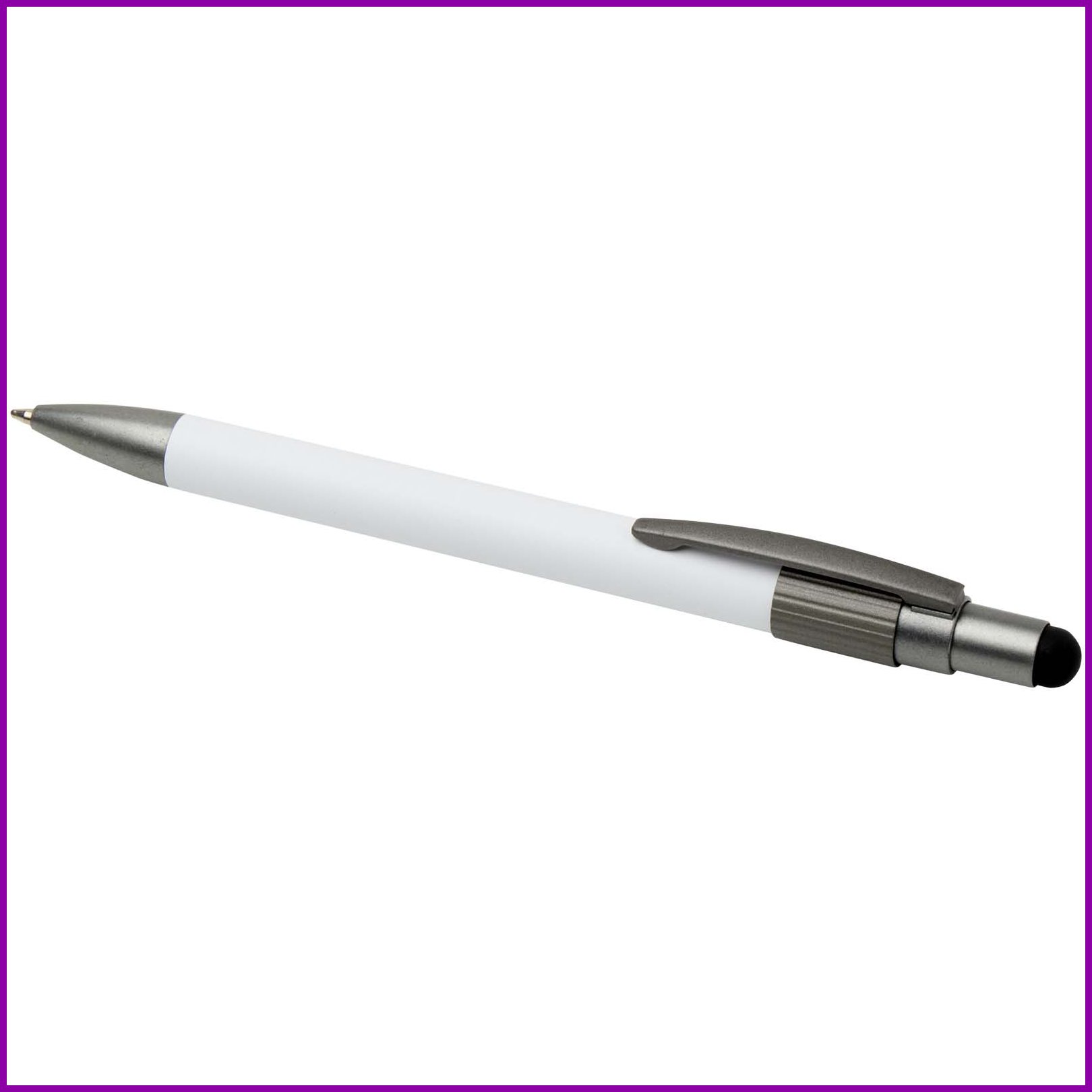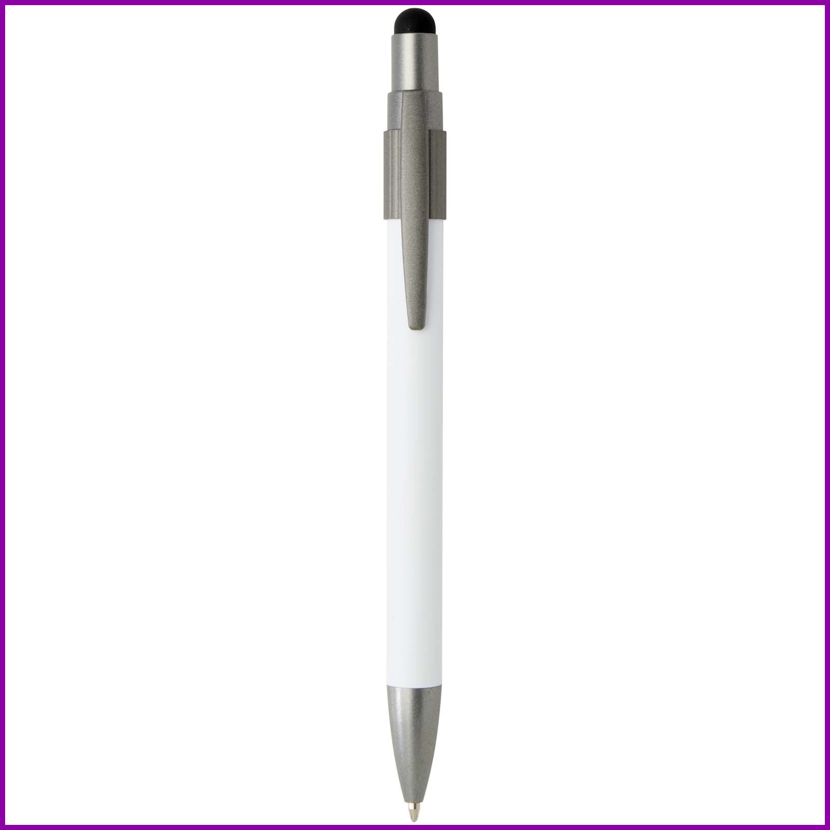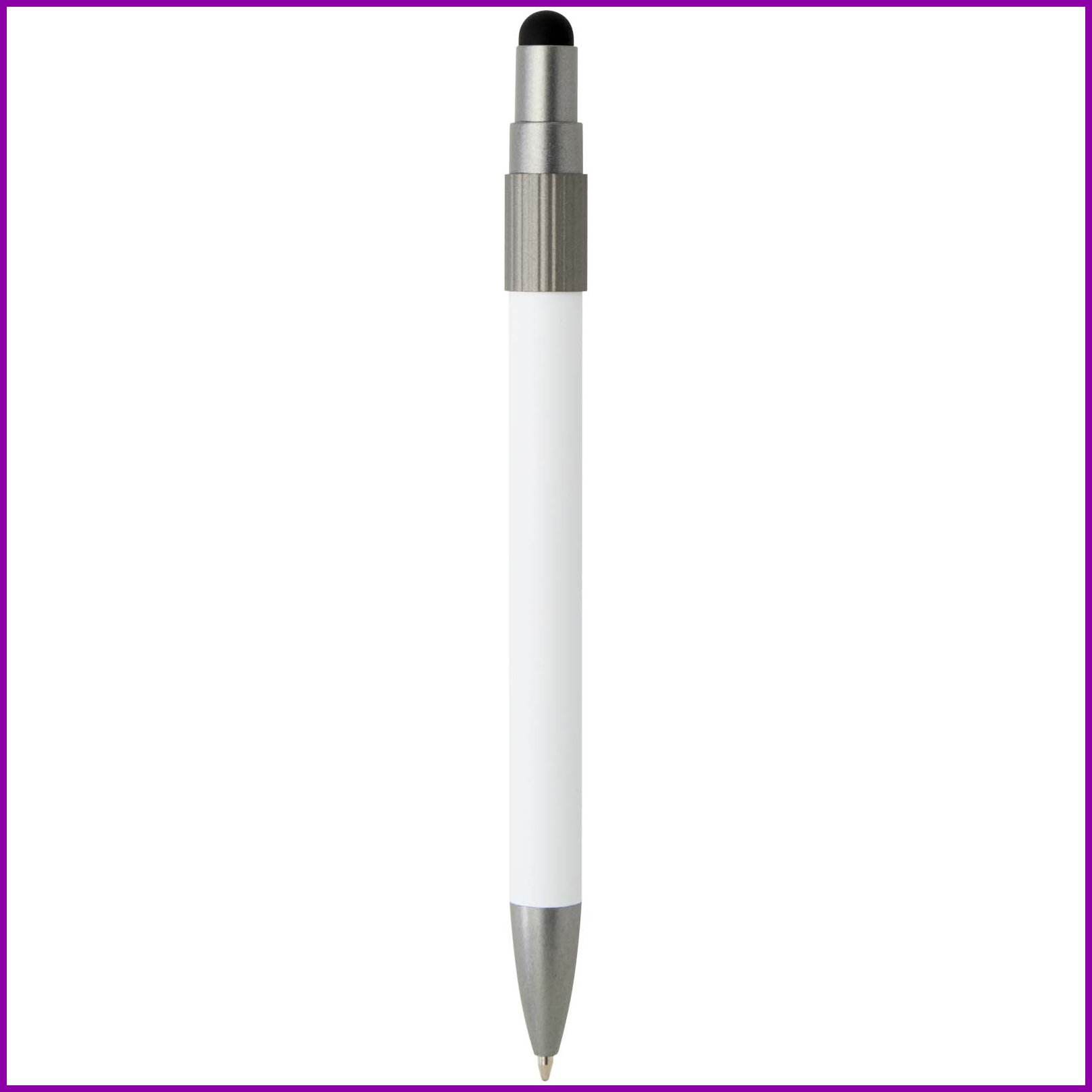 Rill RCS-kierrätetystä materiaalista valmistettu kuulakärkikynä, jossa on kosketusnäyttöpää ja sormihyrrä (musta muste) Valkoinen 1,80€