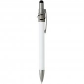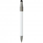 Rill RCS-kierrätetystä materiaalista valmistettu kuulakärkikynä, jossa on kosketusnäyttöpää ja sormihyrrä (musta muste) Valkoinen