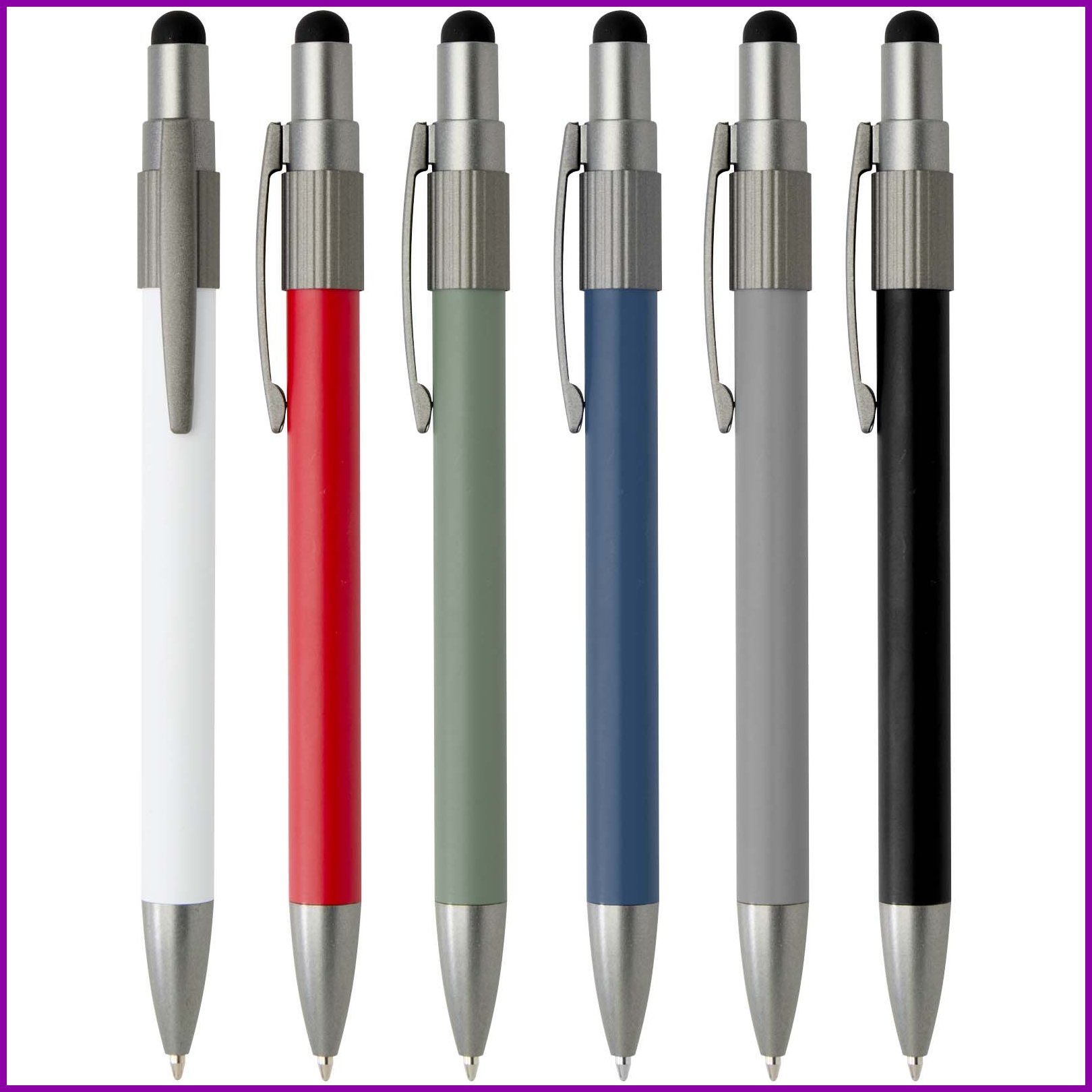 Kuulakärkikynässä, jossa on kosketusnäyttökynä ja hypistelyhyrrä, yhdistyvät käytännöllisyys ja leikkisä muotoilu. Kynä on valmistettu RCS-sertifioidusta kierrätetystä alumiinista, ja siinä on pehmeä työntömekanismi sekä kosketusnäytän käyttöä helpottava kosketusnäyttökärki. Sisäänrakennettu hypistelyhyrrä kynän päässä tarjoaa stressin lievitystä (aktivoi se pyyhkäisemällä). Kynän musteen väri: musta. Kirjoituspituus: 1000 metriä.Värit ja Koot