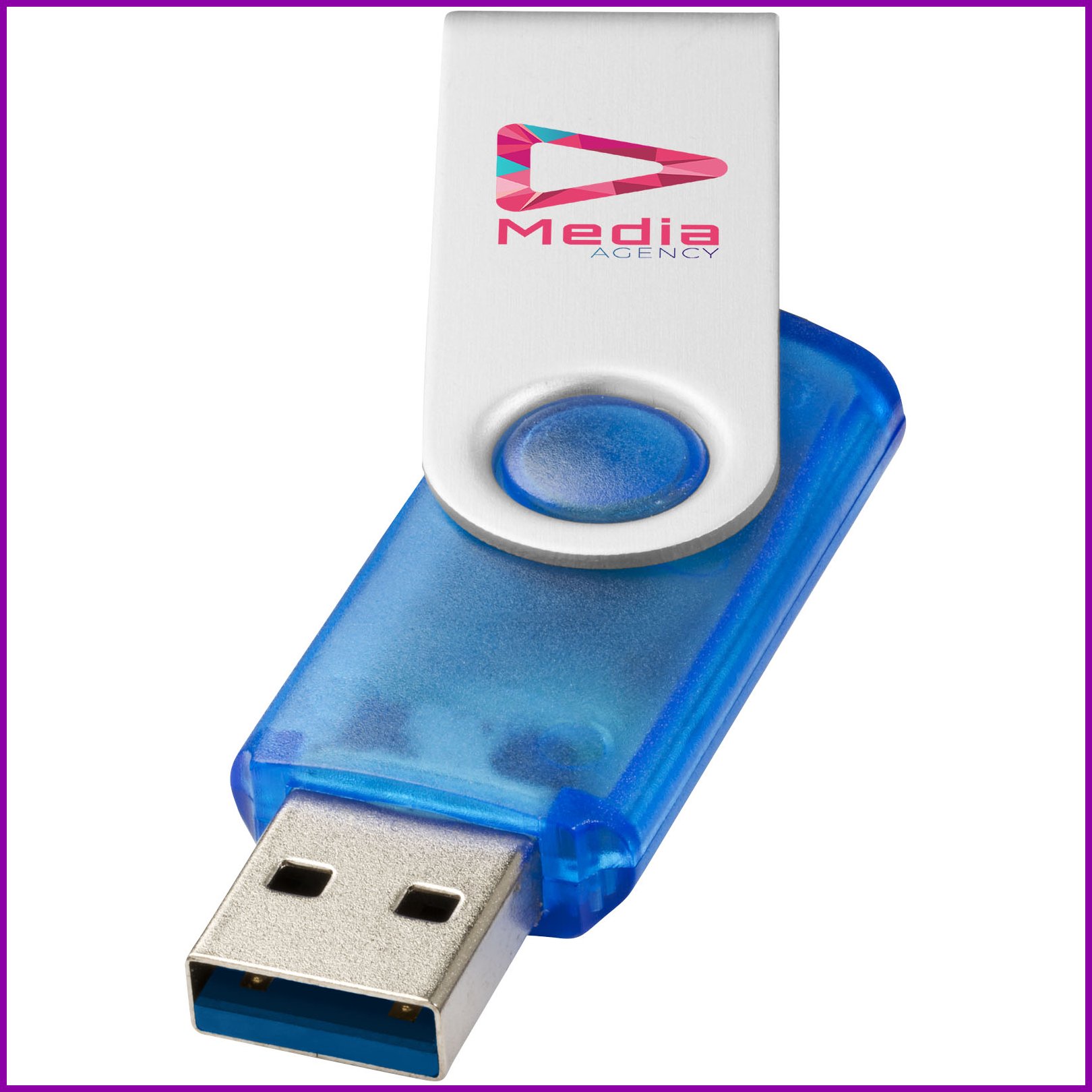 Pyydä tarjous painatuksesta tuotteseen Rotate USB 3.0 läpikuultava Sininen