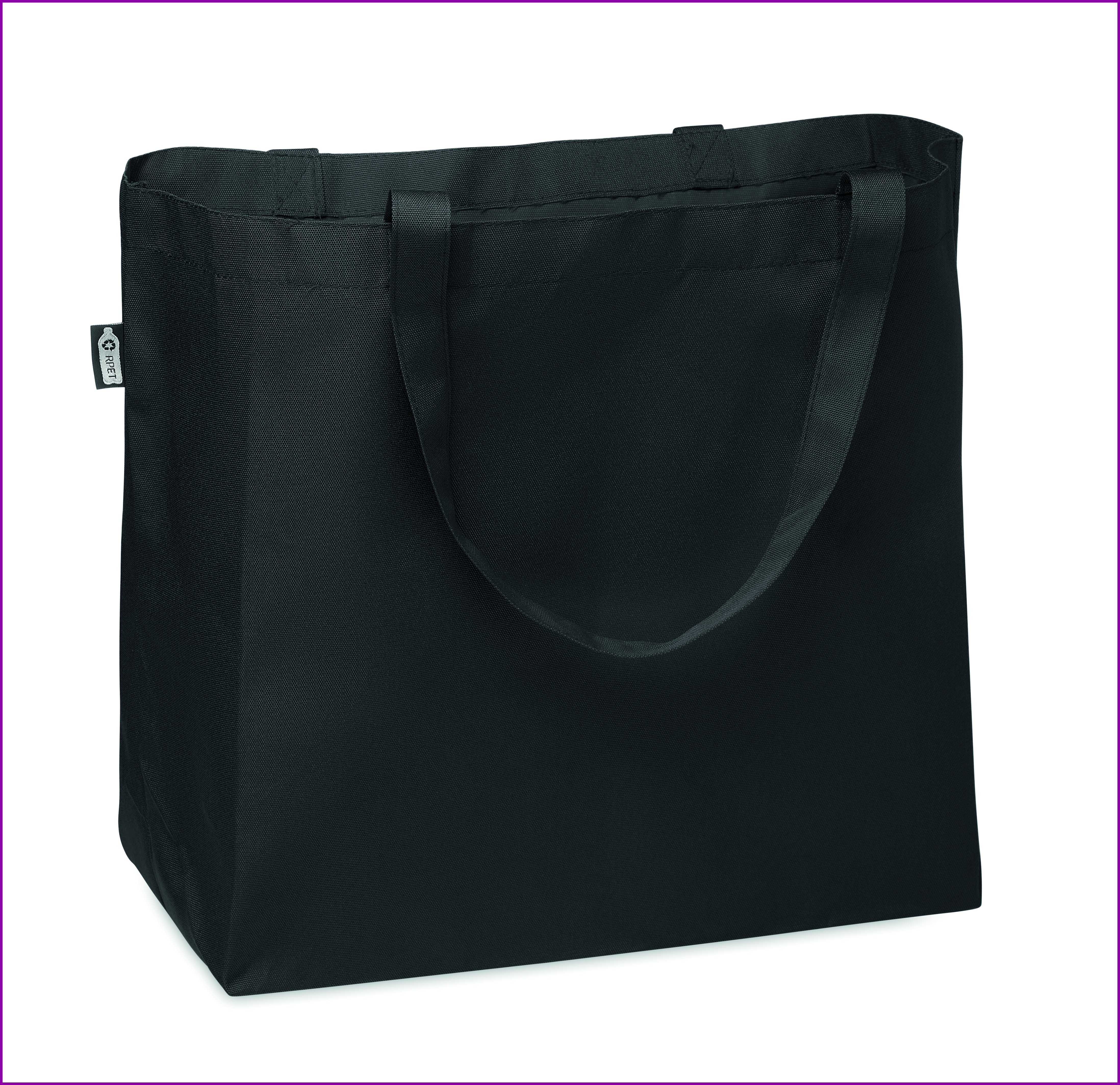 600D RPET- suuri kassi, pitkillä kahvoilla ja pohjalevikkeellä.