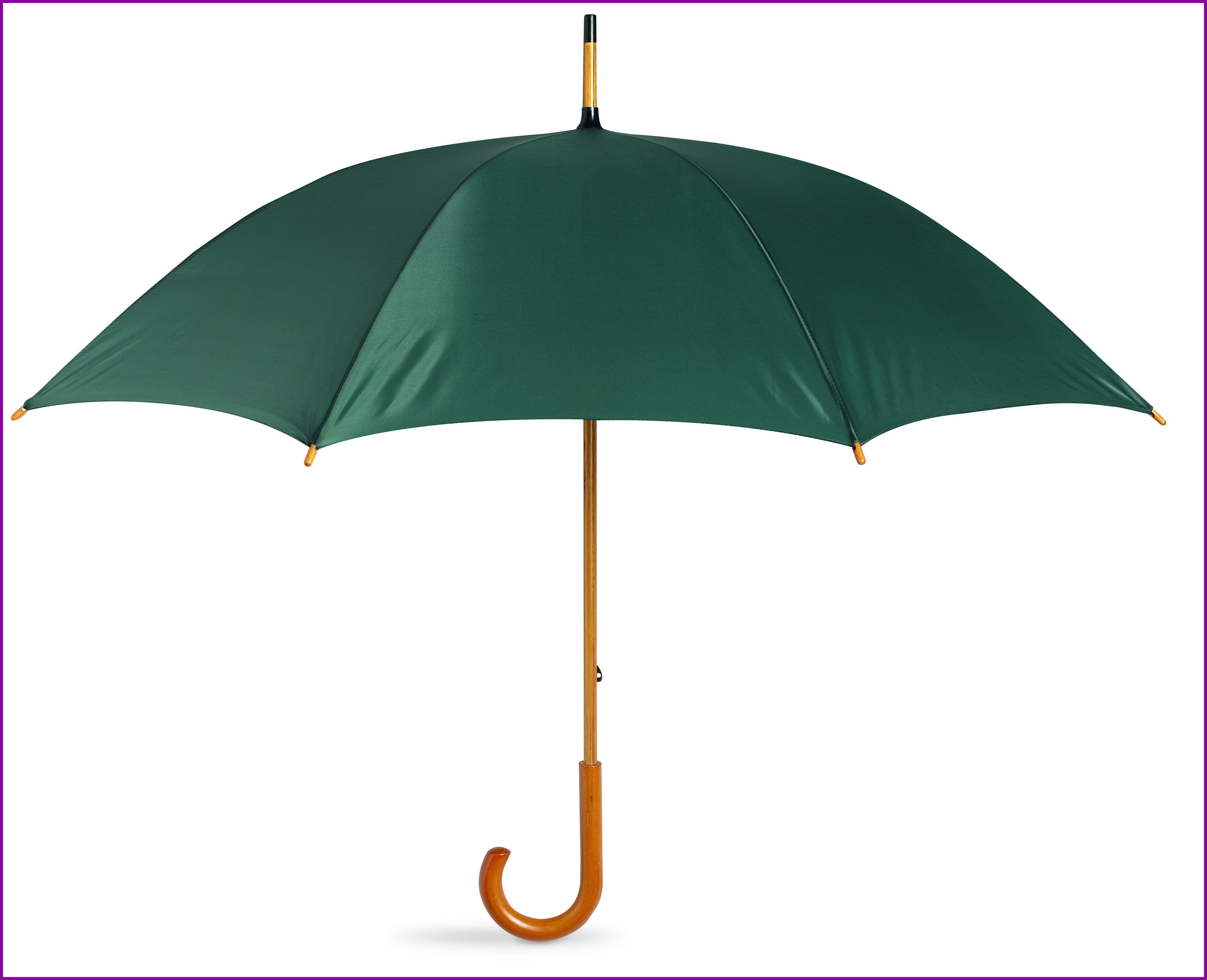 Manuaalisesti toimiva 23 tuuman sateenvarjo, 190T polyesteriä. Puinen varsi, kärjet ja yläosa. Mustat päällystetyt metallisissa ruoteissa, kaareva puukahva ja manuaali suljin.
