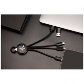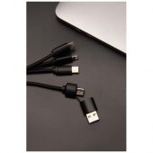 5-in-1-latauskaapeli, jossa on 3 liitintä (Type-C, Android, iPhone) ja rPET-johdot (valmistettu kierrätetyistä muovipulloista). USB-A- ja USB-C-liittimen ansiosta kaapeli on täysin yhteensopiva markkinoiden uusimpien tietokoneiden (USB-C) kanssa. Kärjissä metallia muistuttava pinta. Kaapelilla voi ladata jopa 3 laitetta samanaikaisesti. Toimitetaan kierrätettävässä rasiassa kierrätyspaperikortilla.Värit ja Koot