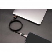 Tässä erittäin nopeassa 100 W:n magneettisessa latauskaapelissa, joka on valmistettu kierrätetyistä nailonista ja sinkistä, on virransyötön digitaalinen näyttö. Se on yhteensopiva kannettavien tietokoneiden, tablettien ja älypuhelimien kanssa. Kaapeli tukee USB-A- ja USB-C-tuloja ja sisältää CarPlay-toiminnon. Toimitetaan kierrätettävässä TPU-pussissa. Johdon pituus: 1,5 metriä.
