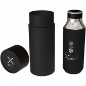 Tässä 500 ml:n eristetyssä vesipullossa on kolmiseinäinen ruostumattomasta teräksestä valmistettu rakenne ja pehmeä kumipinta, ja se pitää juomat kuumina jopa 12 tuntia tai kylminä yli 24 tuntia. Sisäänvedettävä pilli helpottaa juomista ja auttaa estämään roiskeita. Voidaan personoida laserkaiverruksella, jossa on metalliefekti. Toimitetaan kierrätetystä kartongista valmistetussa lahjapakkauksessa.Värit ja Koot